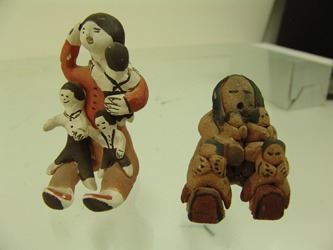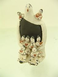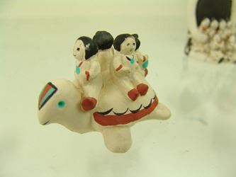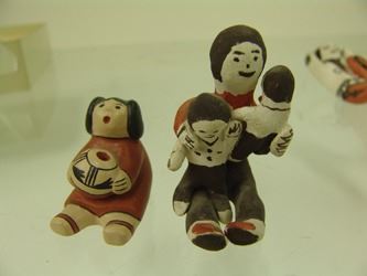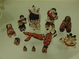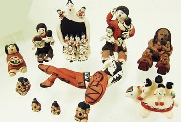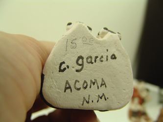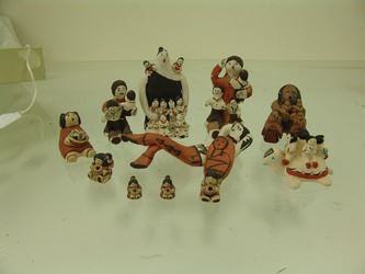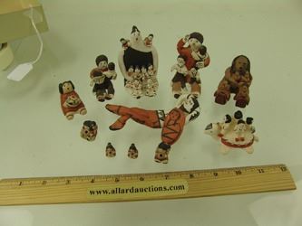 Collection of eleven, hand formed polychrome figures including several storytellers. Some signed, "C. Garcia, Acoma", "M. Ascencio", "N. Pino", and others. Very good condition, a few minor scuffs and scratches. Mid/Late 1900s. Largest 3-1/2" high.