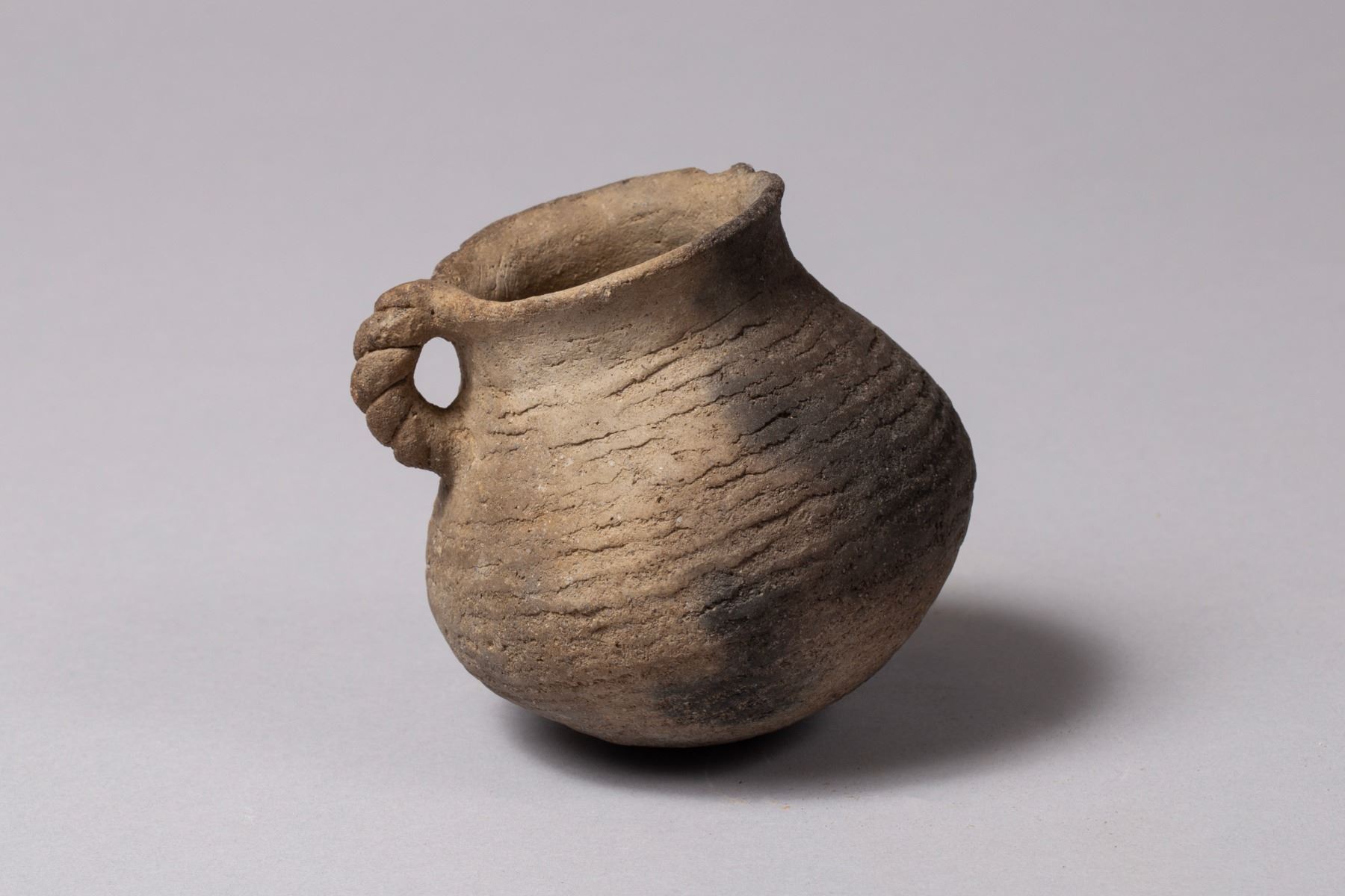 G.) Little Corrugated Mimbres Mug with twist handle