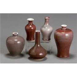Group of Ten Chinese Red Glazed Cabinet Vases and a Paste Box, 18th-19th Century, Of various...
