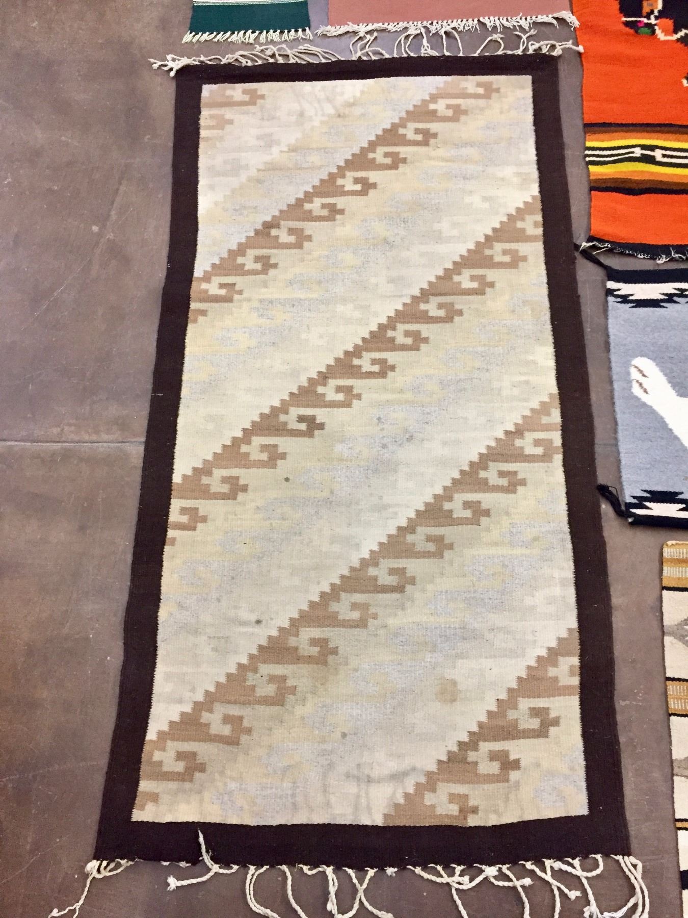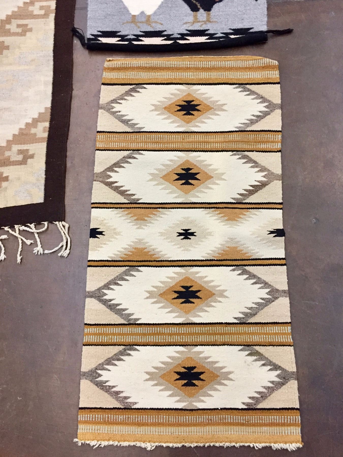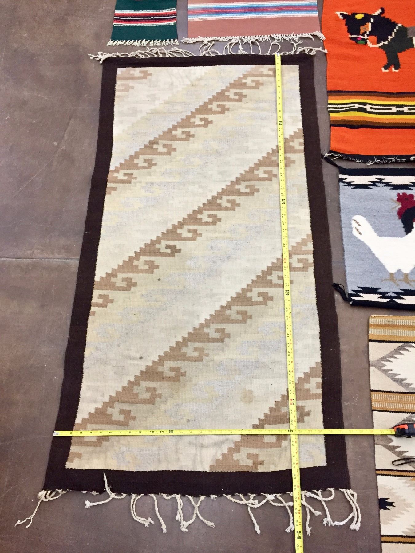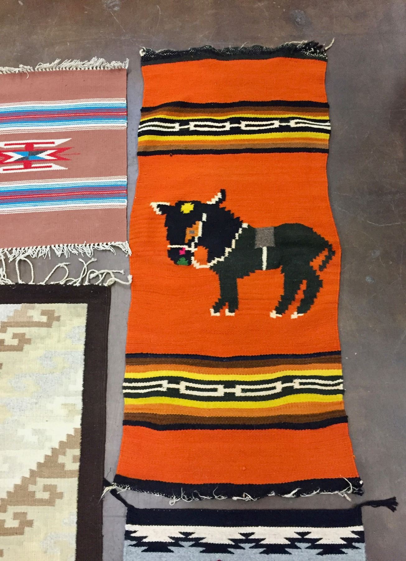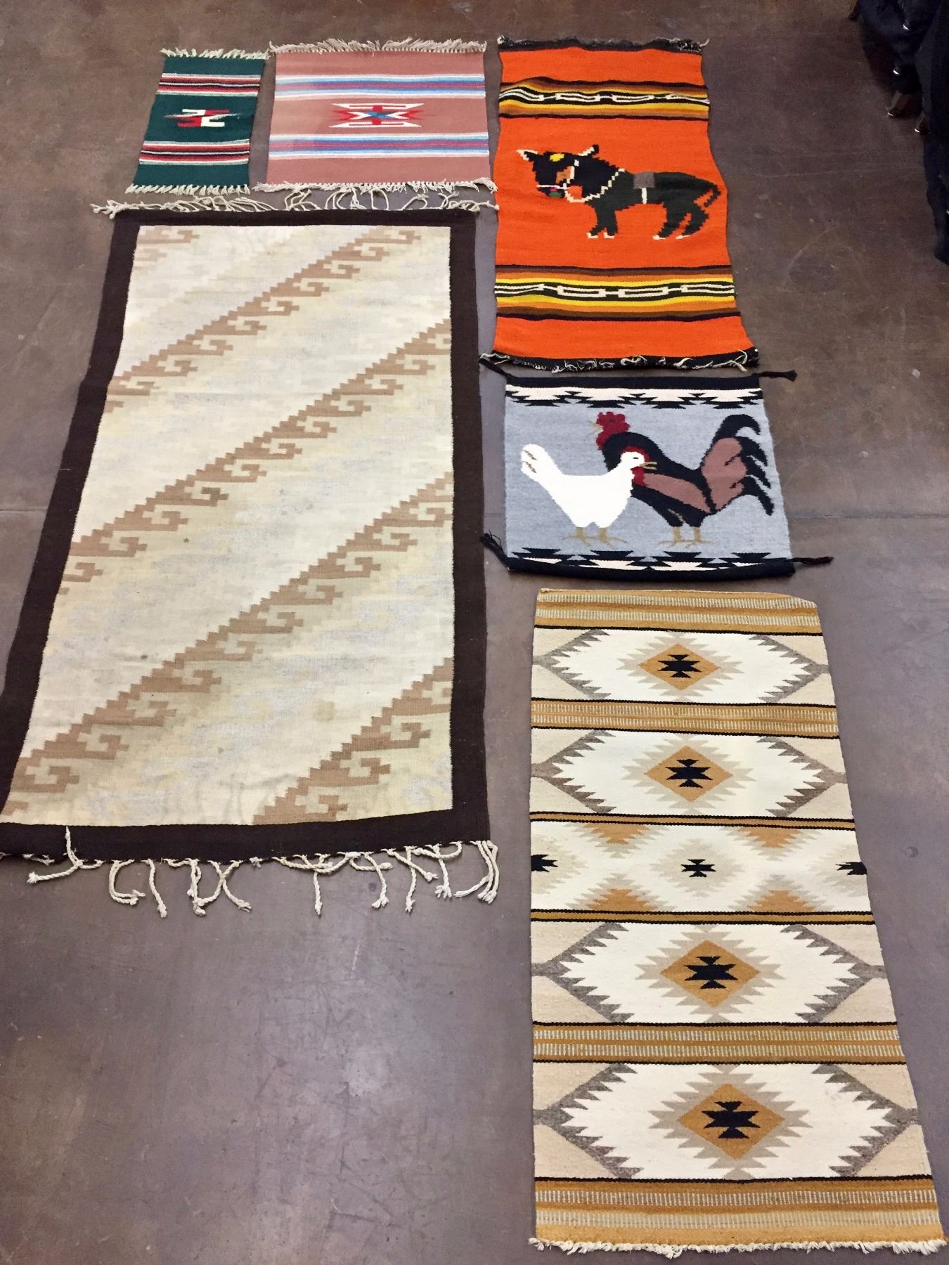 Description: A group of various textiles. There are a couple of Chimayo, Mexican and a Navajo textile. Maker: Various. Approx. Age: Vintage. Size: Measures from 29-1/2”w x 56-1/2”l to 9-1/2”w x 19”l. Condition: Pretty good for their ages, normal wear expected. Please look closely at the pictures - they are an important part of our description. Shipping: There will be a $8 handling / packaging fee for shipping this lot. The actual cost of postage will be added on top of that.