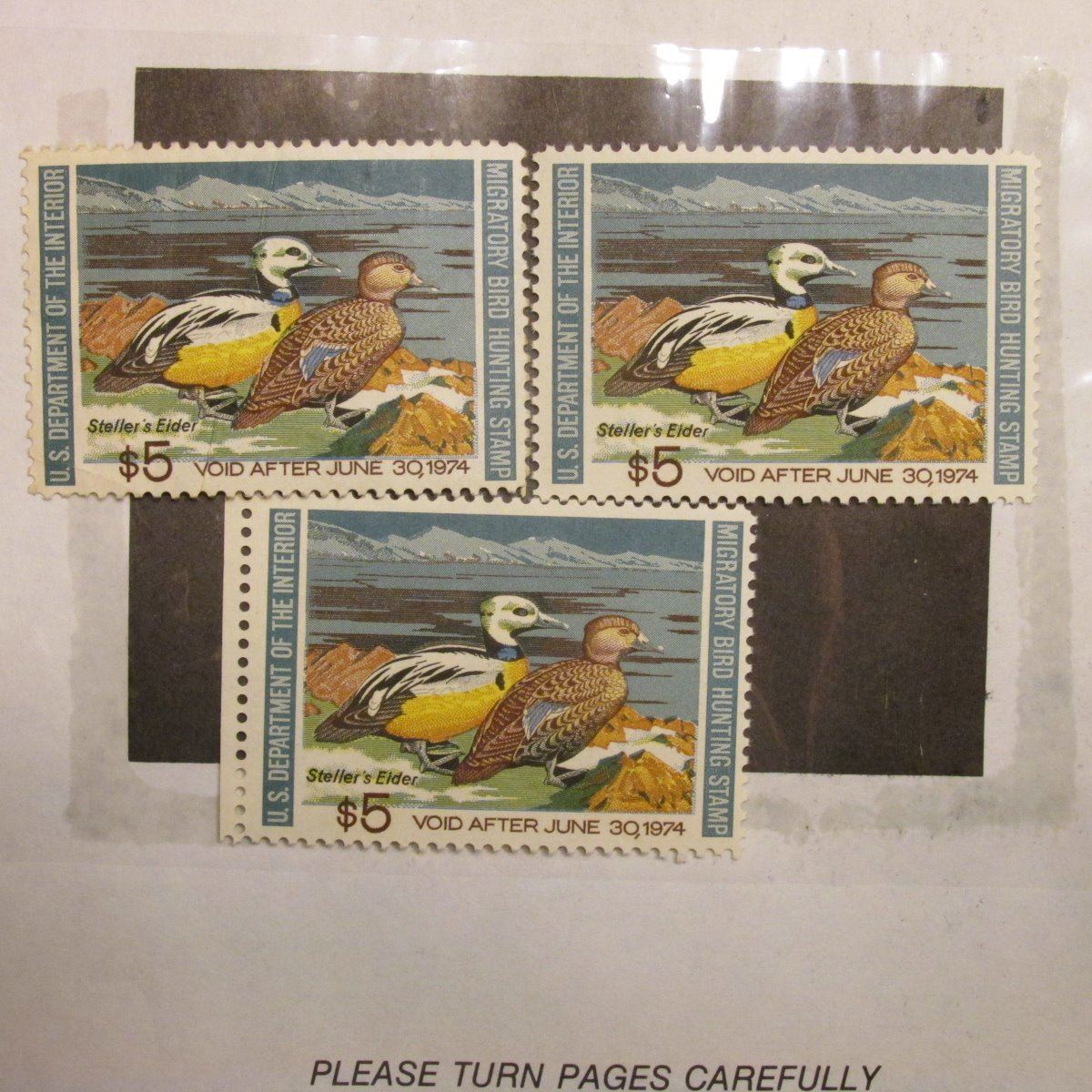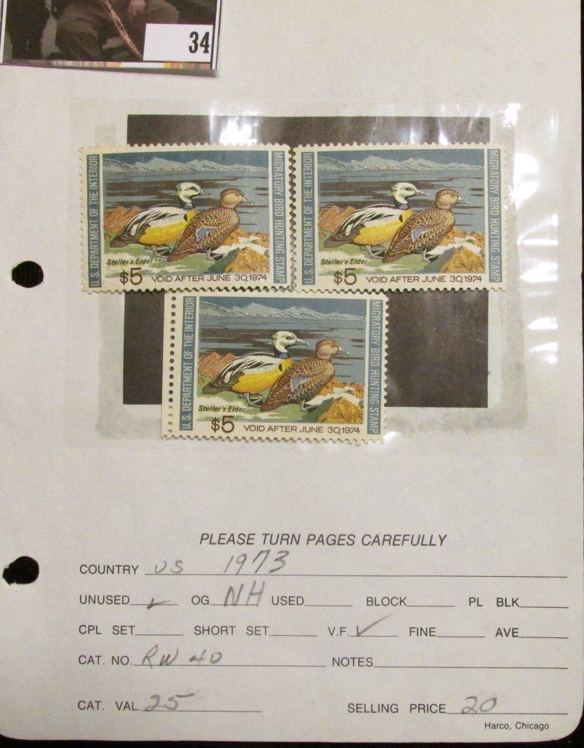 Group of Three 1973 $5 Federal Migratory Bird Hunting Stamp, OG, NH, VF. Scott RW40.