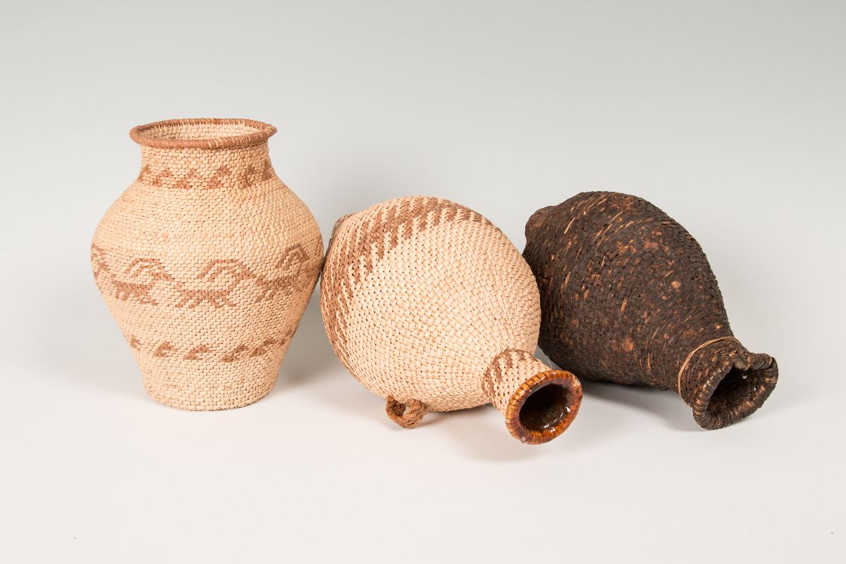 Group of Three Baskets: 1) Twined Olla Basket by Everett Pikyavit (Paiute)