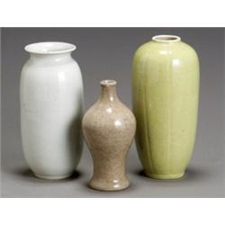 Group of Three Chinese Monochrome Crackle, Glazed Vases, 19th Century, Consisting of a whit...