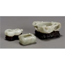 Group of Three Chinese Pale Celadon Jade Brushwashers, 19th Century, The first, a double-gour...