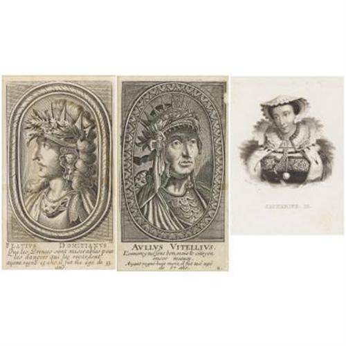 <B>Group of Three Etchings</B></I><BR> A group of three etchings entitled <I>Catherine II </B></I>and <I>Le Comte D'Argental </B></I>with date 1788. Artist's name illegible, along with a pair entitled <I>Flavius Domitianus </B></I>and <I>Aullus Vitellius</B></I><BR><BR><b>Shipping:</b> Requires 3rd Party Shipping (<a target="_blank" href="http://www.heritageauctions.com/common/shipping.php">view shipping information</a>)