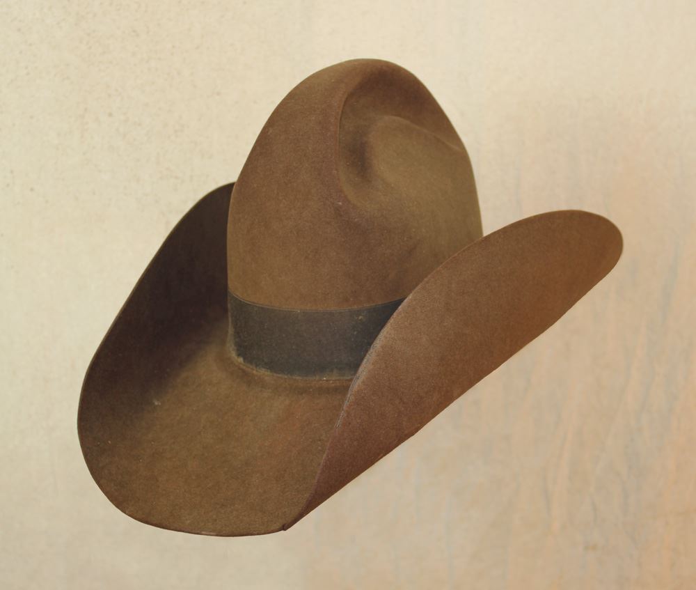 An oversized Stetson hat shaped in Tony's favorite old school shape, a Stetson straw hat, and O' Farrell Tom Mix style hat. All size 7 3/8. Tony Baratono collection.