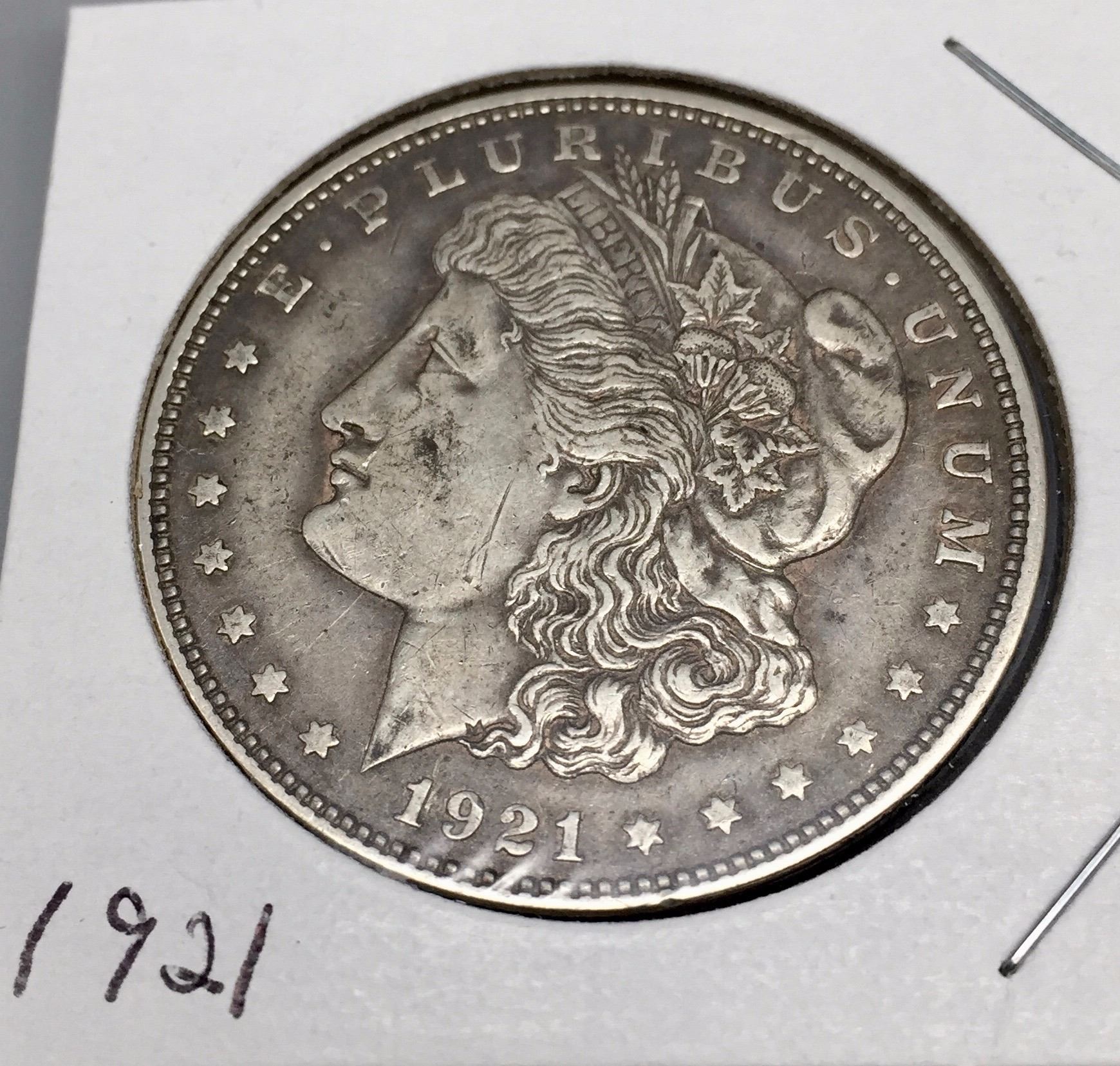 Maker: US Government. Approx. Age: 1921. Size: 1 1/2” with protective covers. Additional Info: The Morgan dollar was minted from 1878 to 1904, and again in 1921. It was the first standard silver dollar minted since production of the previous design, the Seated Liberty dollar, ceased due to the passage of the Coinage Act of 1873, which also ended the free coining of silver. Condition: Looks fair, but not graded as far as we know. Please look closely at the pictures - they are an important part of our description. Shipping: There will be a $5 handling / packaging fee for shipping this lot. The actual cost of postage will be added on top of that.