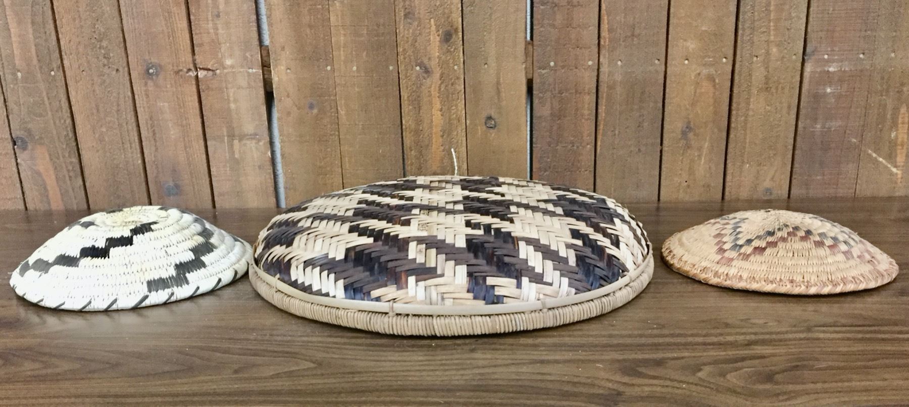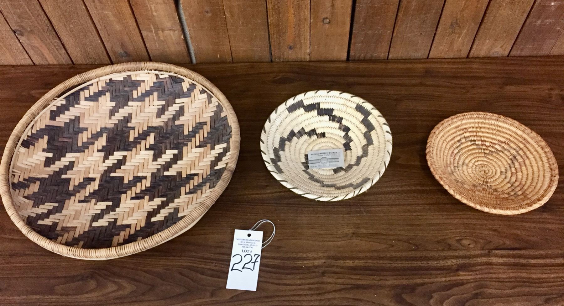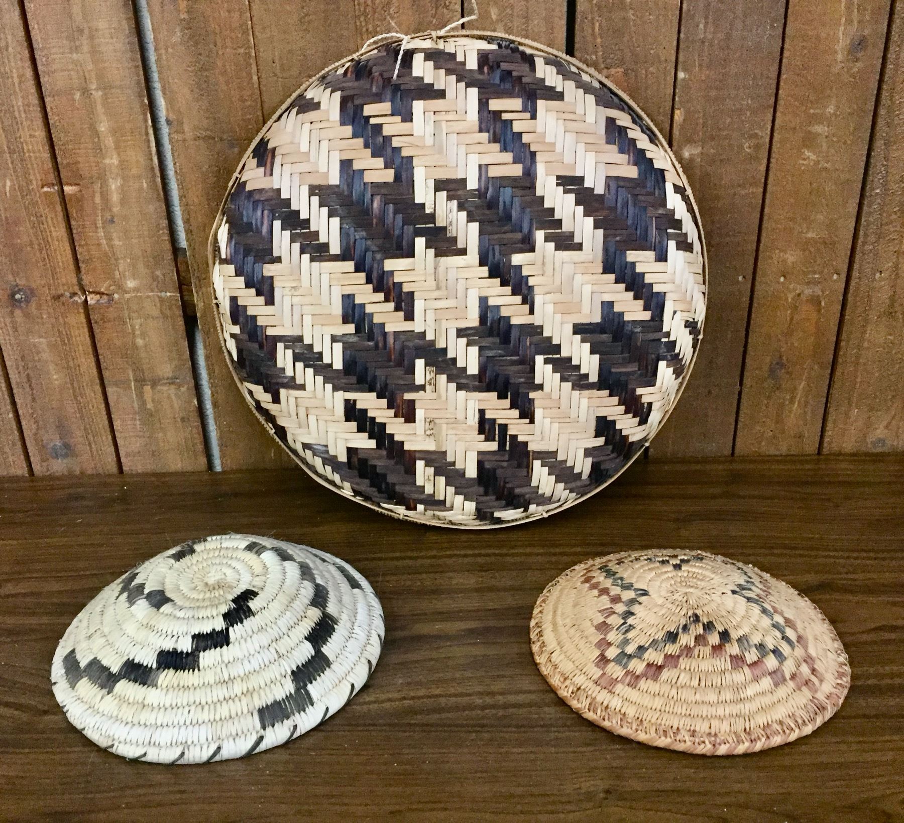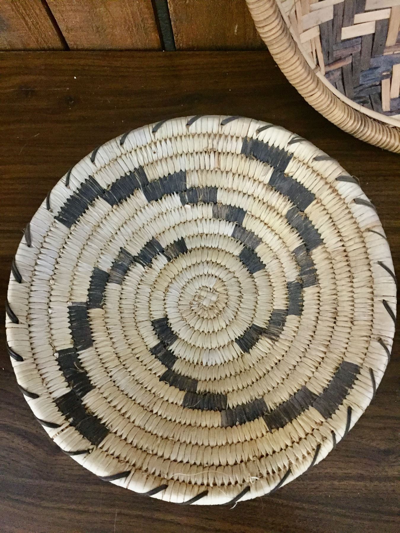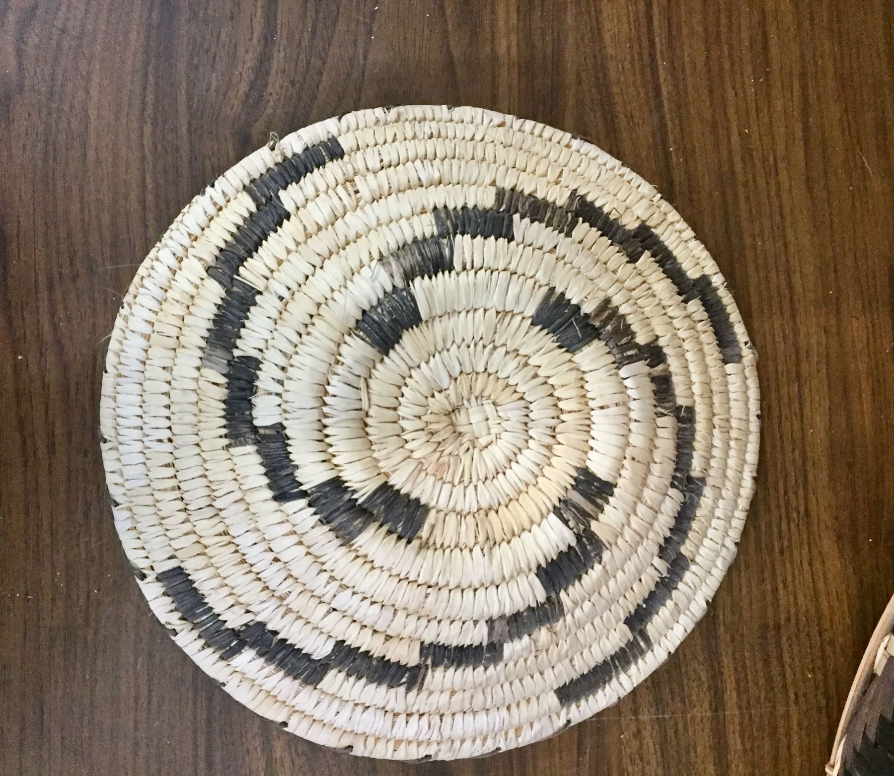 Description: For sale in this lot is a group of three Native American baskets that vary is sizes origins and styles. There is a Navajo, Tohono O’odham and a Hopi basket. Maker: Unknown. Approx. Age: Vintage. Size: Various. Condition: Pretty good for their ages, normal wear expected. Please look closely at the pictures - they are an important part of our description. Shipping: There will be a $7 handling, packaging fee for shipping this lot. The actual cost of postage will be added on top of that.