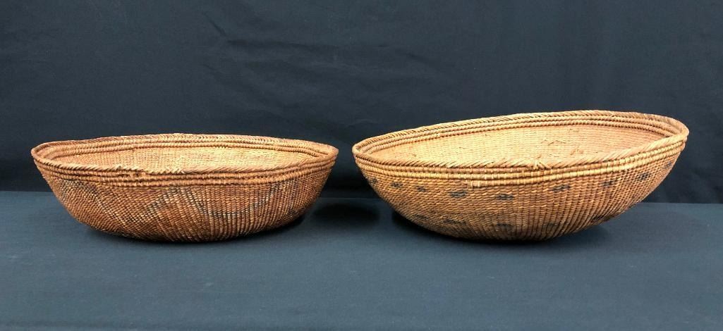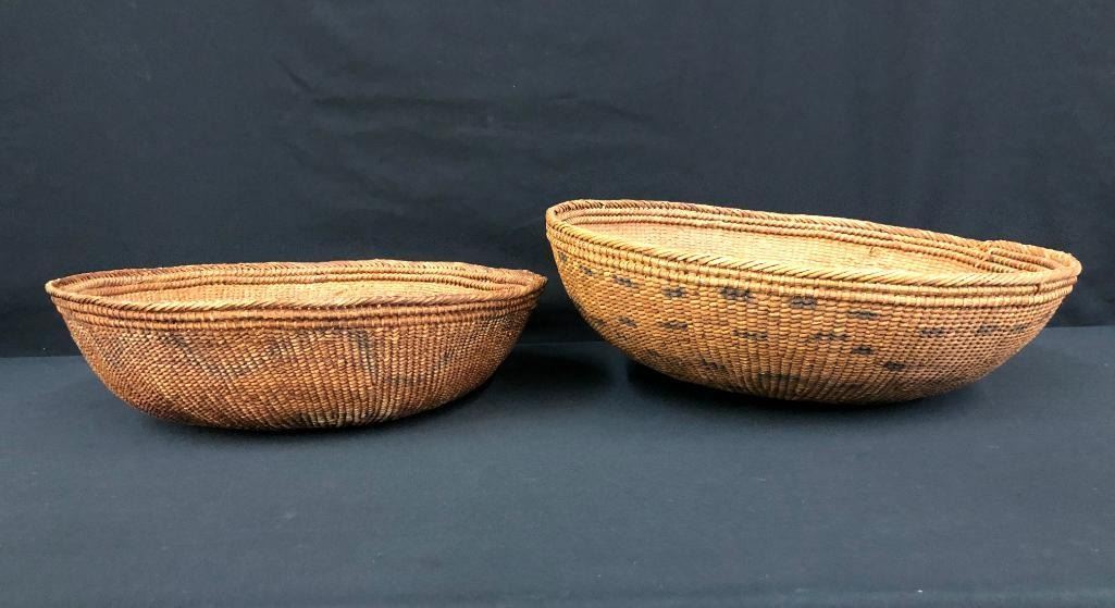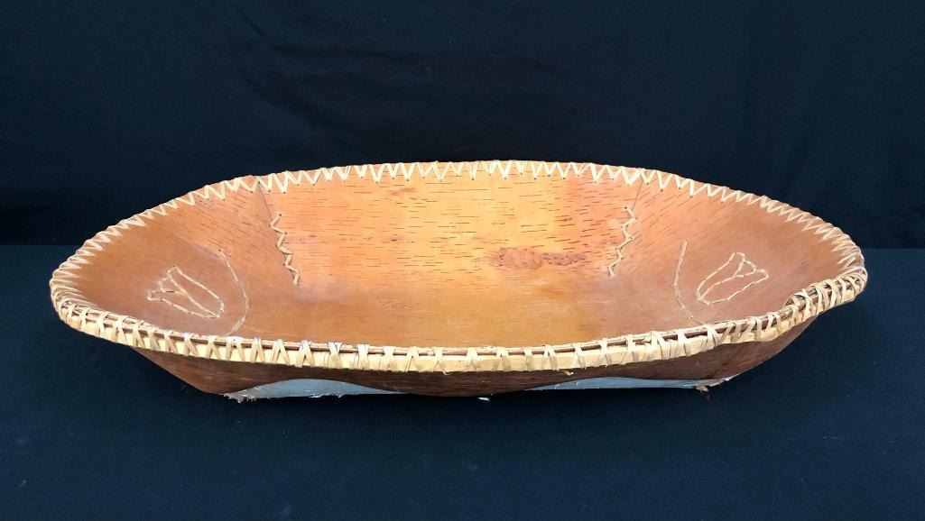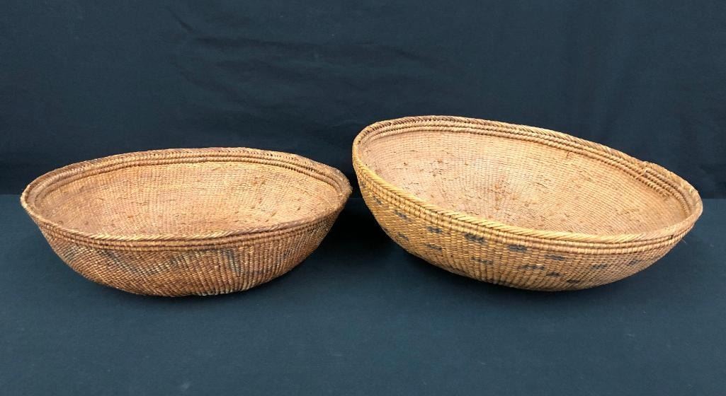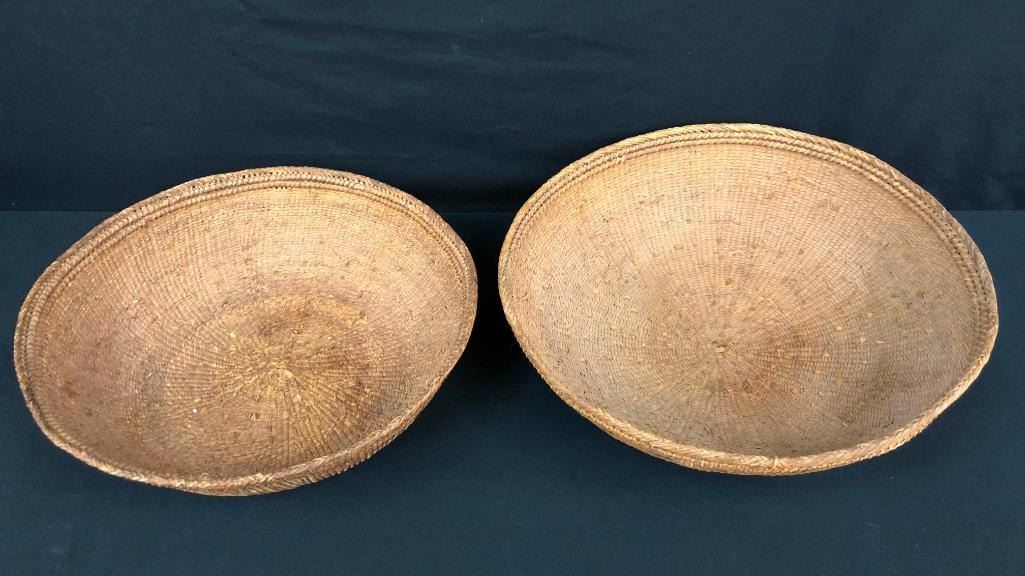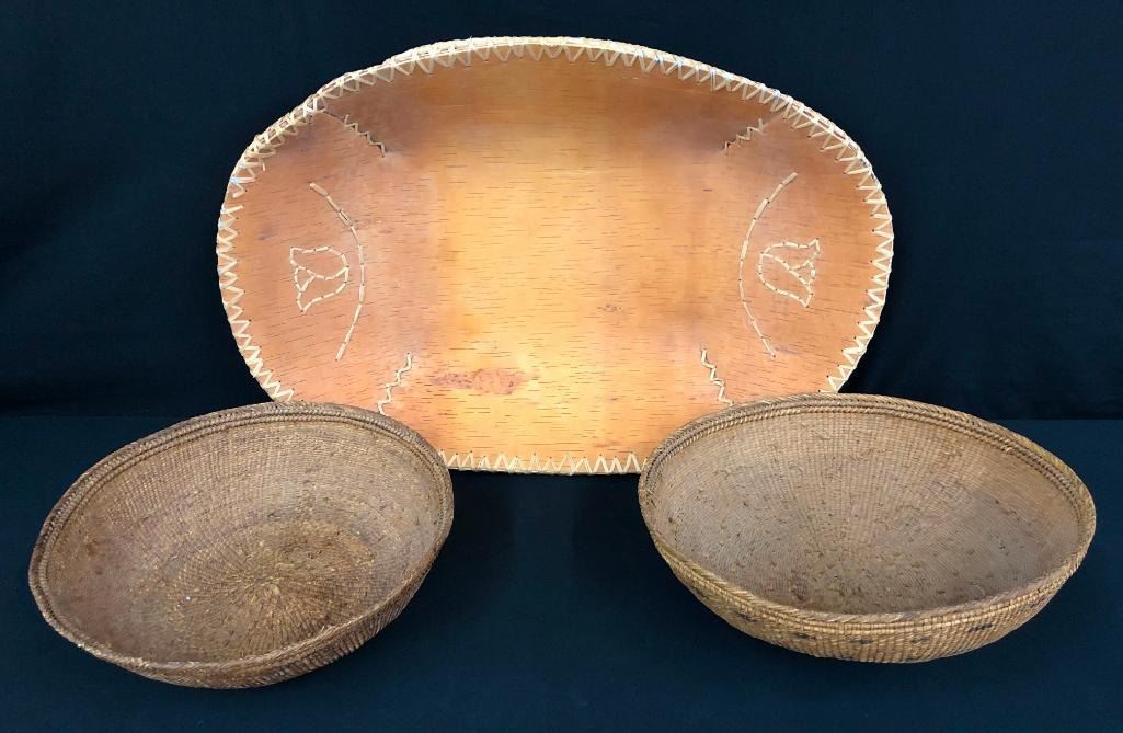 Presented for sale in this lot is a group of three vintage baskets. There is a large birch bark basket and two other ethnic baskets of unknown origin.  Each is unique in its own way and this is a great way to enhance or start your collection. MAKER: Unknown weavers. APPROX AGE: Vintage. SIZE: From 18-1/2 inches wide x 27-1/2 inches long x 4-1/2 inches deep to 14 inches wide x 4-1/8 inches deep. CONDITION: Pretty good for their ages, some wear expected. Please look closely at the pictures as they are an important part of our description and are hereby incorporated into the description, specifically with regards to condition. SHIPPING: There will be a $8 handling / packaging fee for shipping this lot. The actual cost of postage will be added on top of that. BUY IT NOW: If you would like to buy this item now, without waiting for the auction day to bid on it, we do offer this option (which is available up to 48 hours before the actual auction starts). The “Buy it Now†price is the high estimate of this lot (plus applicable fees and the Buyer's premium is discounted to 10% when using the Buy it Now option). If you would like to exercise this option, you must contact us by email (or phone as long as you talk to someone live). Reference this lot number and your intention to "Buy it Now."