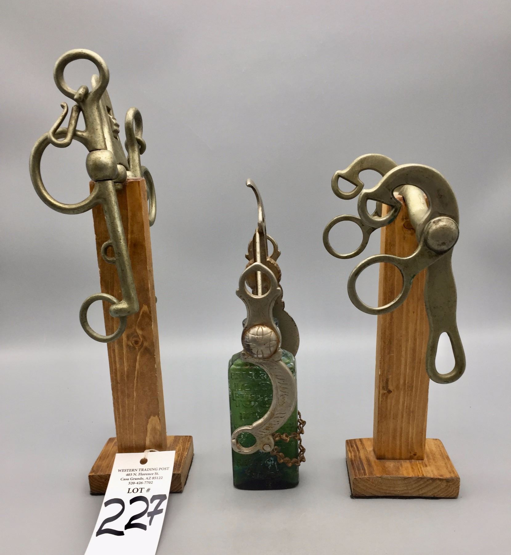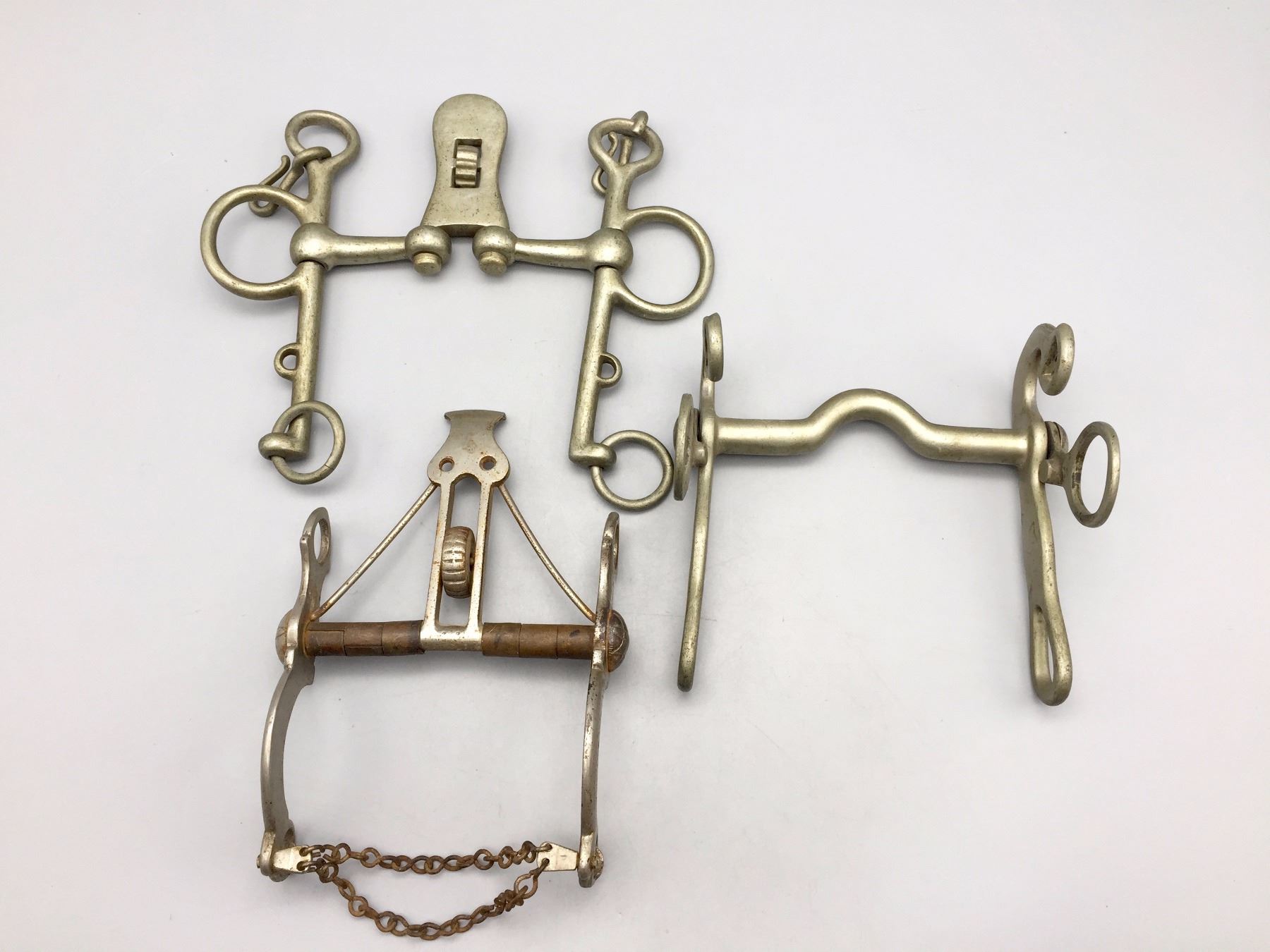 Description: Group of three vintage Buermann bits. Bargain time! Maker: Various Buermann makers. Approx. Age: Early 1900s. Size: 7” shank, 4-1/2” mouth and 6” shank, 5” mouth and 5-1/2” shank, 4-1/4” mouth. Condition: Good for its age, normal wear expected. Please look closely at the pictures - they are an important part of our description. Shipping: There will be a $5 handling / packaging fee for shipping this lot. The actual cost of postage will be added on top of that.
