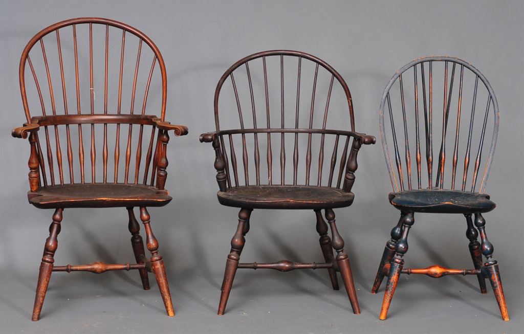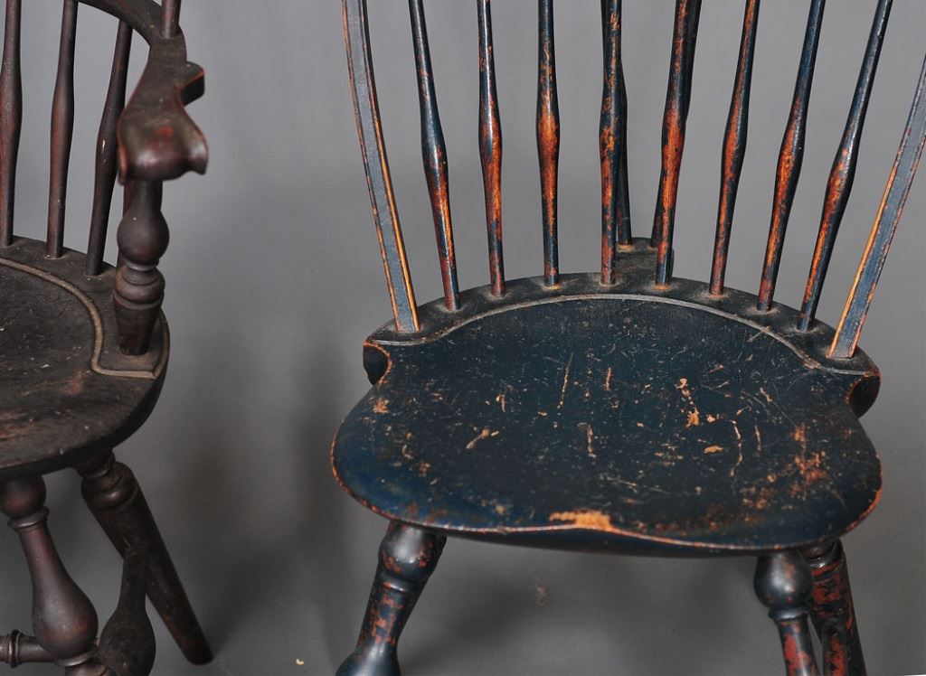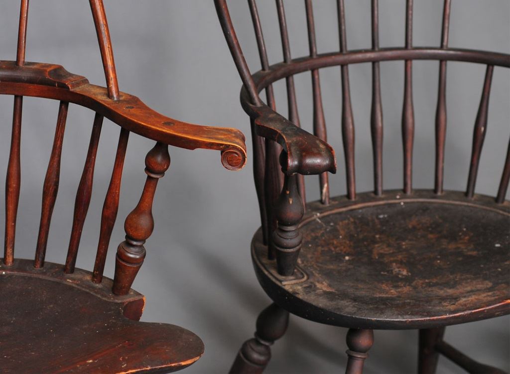 CONDITION REPORT: old nicks and scratches, particularly to seats, and finish wear to arms