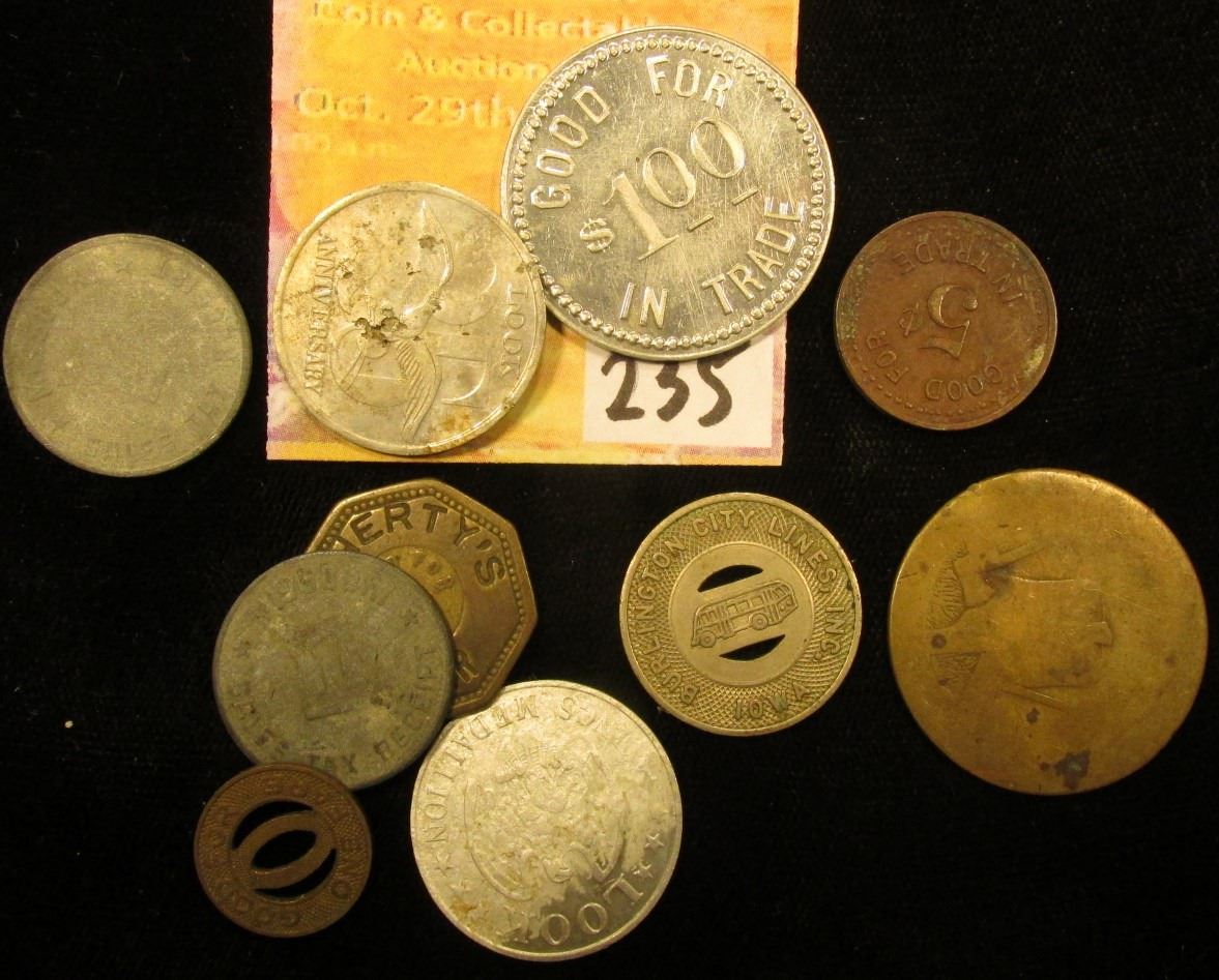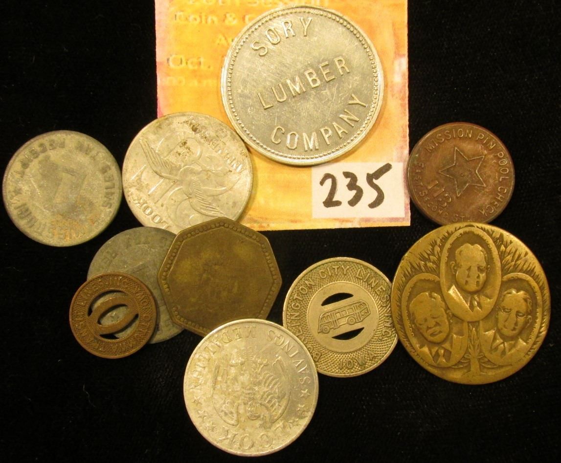 Group of Tokens some of which are from Ottumwa, Iowa including a "Mission Pin Pool Check"; "Sory Lum