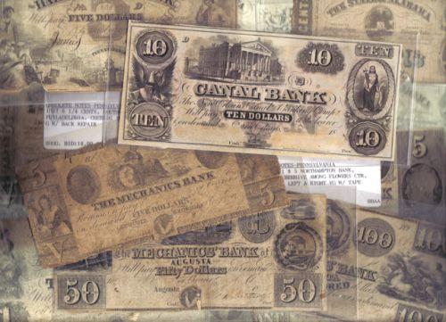 Group of United States Obsolete Bank Notes: Sixteen notes including Tiverton Bank, State Bank of Alabama, State Bank of Georgia, State Bank of North Carolina, State Bank of South Carolina, Mechanics’ Bank, Canal Bank, Northampton Bank, Southwark Bank and City Bank - Augusta. Denominations range from 6-1/4 Cents to 100 Dollars, grades range from Poor to Unissued Remainder AU, mostly G-VG, many with problems