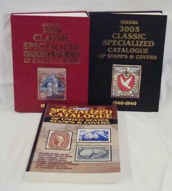 Useful lot of (3)Scott catalogs incl. Hardbound 2004 and 2005 Classic Specialized and 2005 U.S Specialized catalog. Est.$75-125