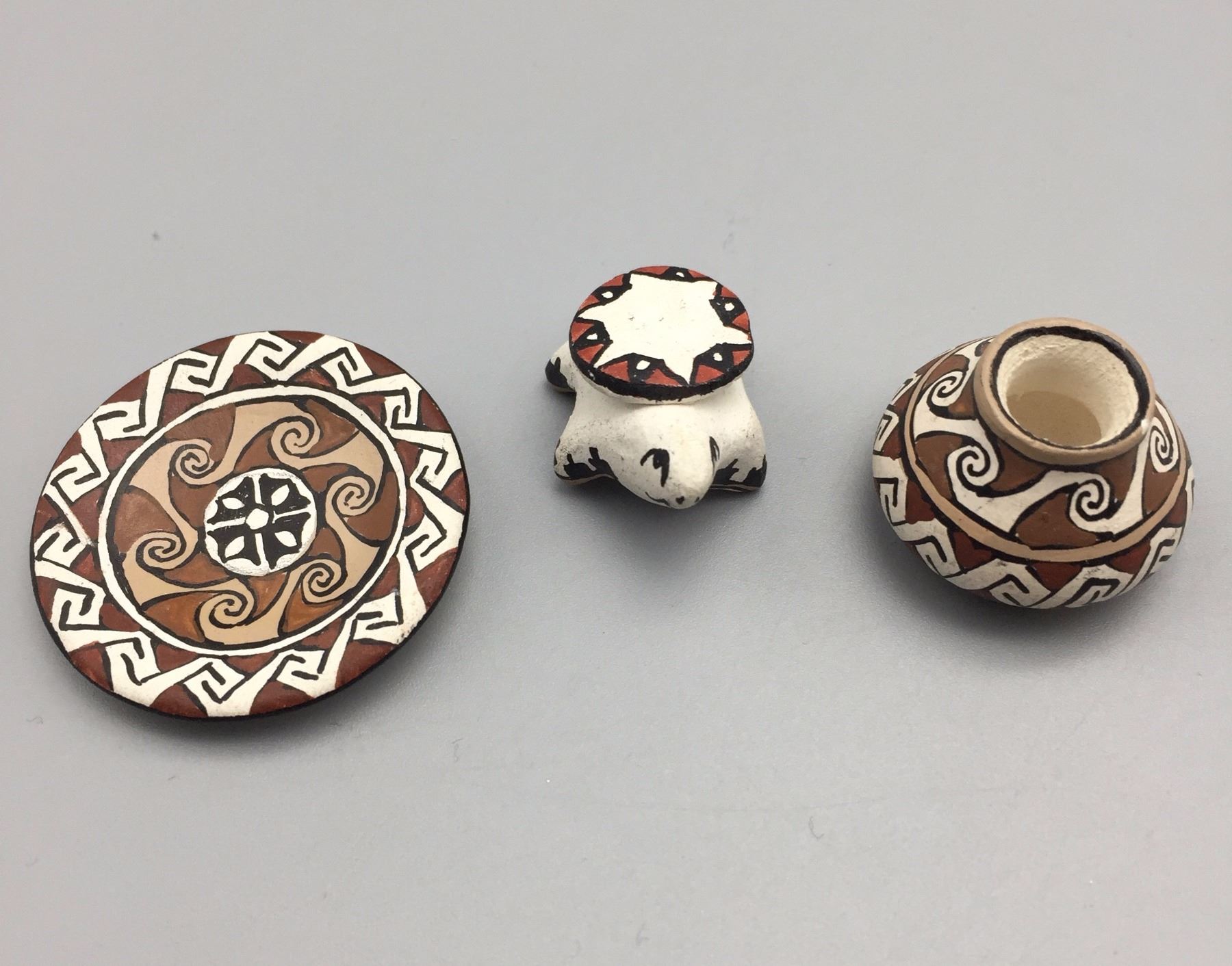 Maker: Looks to be initialed with GB. Approx. Age: Circa 1980s. Size: Each measures from 3/4” to 1 1/2” long. Additional Info: Group of three, very finely, hand-made/hand-painted pots. Signed. Condition: Good for their age. Please look closely at the pictures - they are an important part of our description. Shipping: There will be a $5 handling / packaging fee for shipping this lot. The actual cost of postage will be added on top of that.