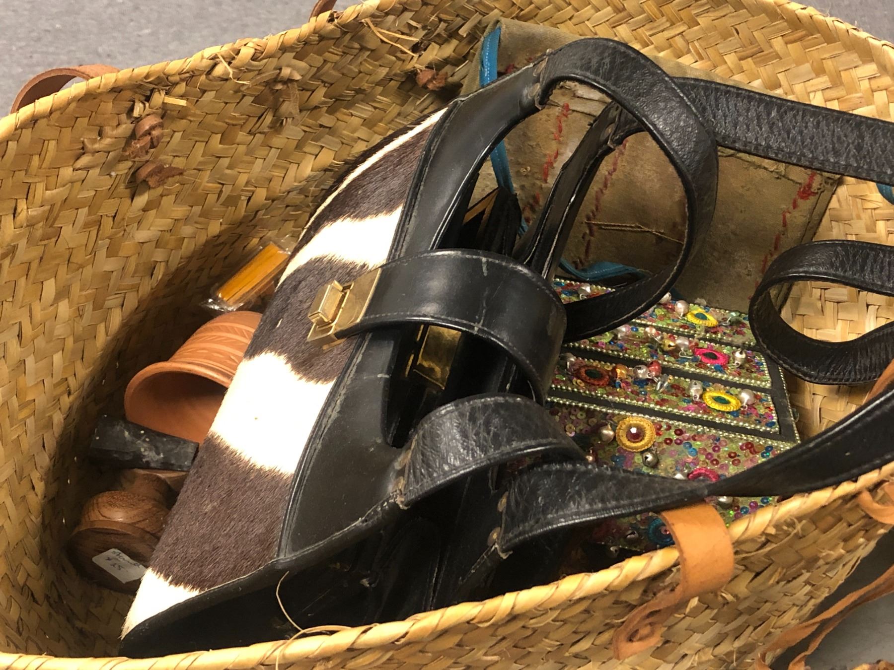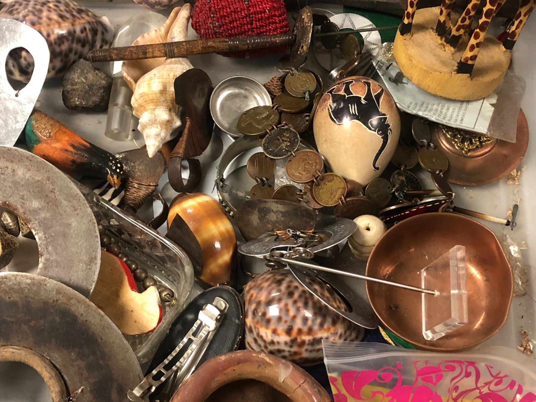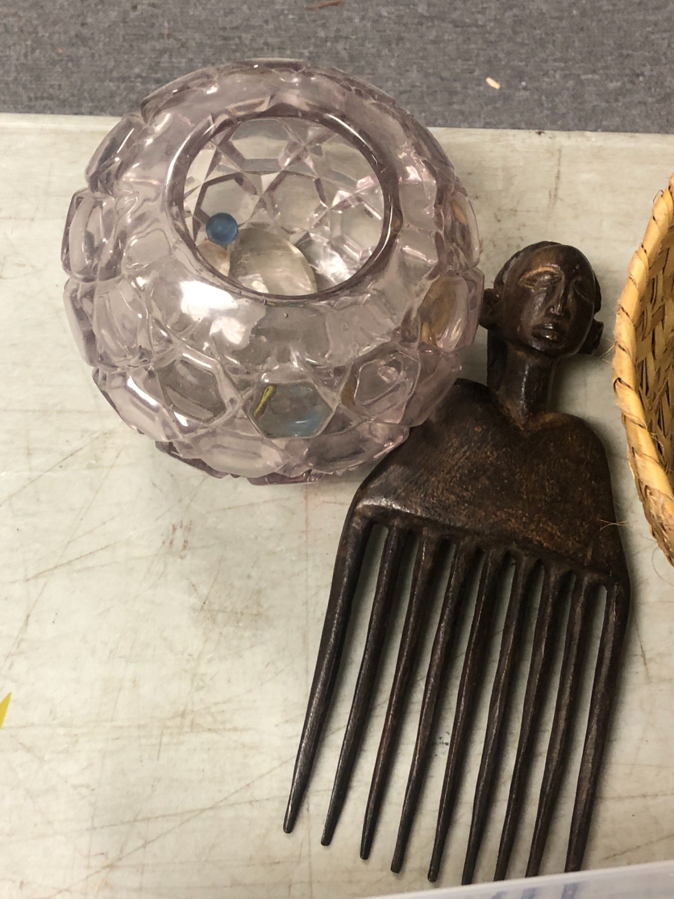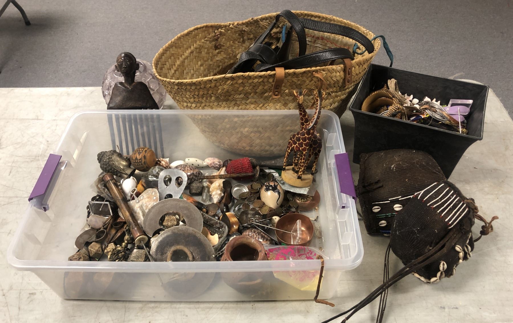 Group of assorted African items - includes bangals / beaded necklaces / beaded bracelets / cowhide designed purse / large afro combs / African pouches etc