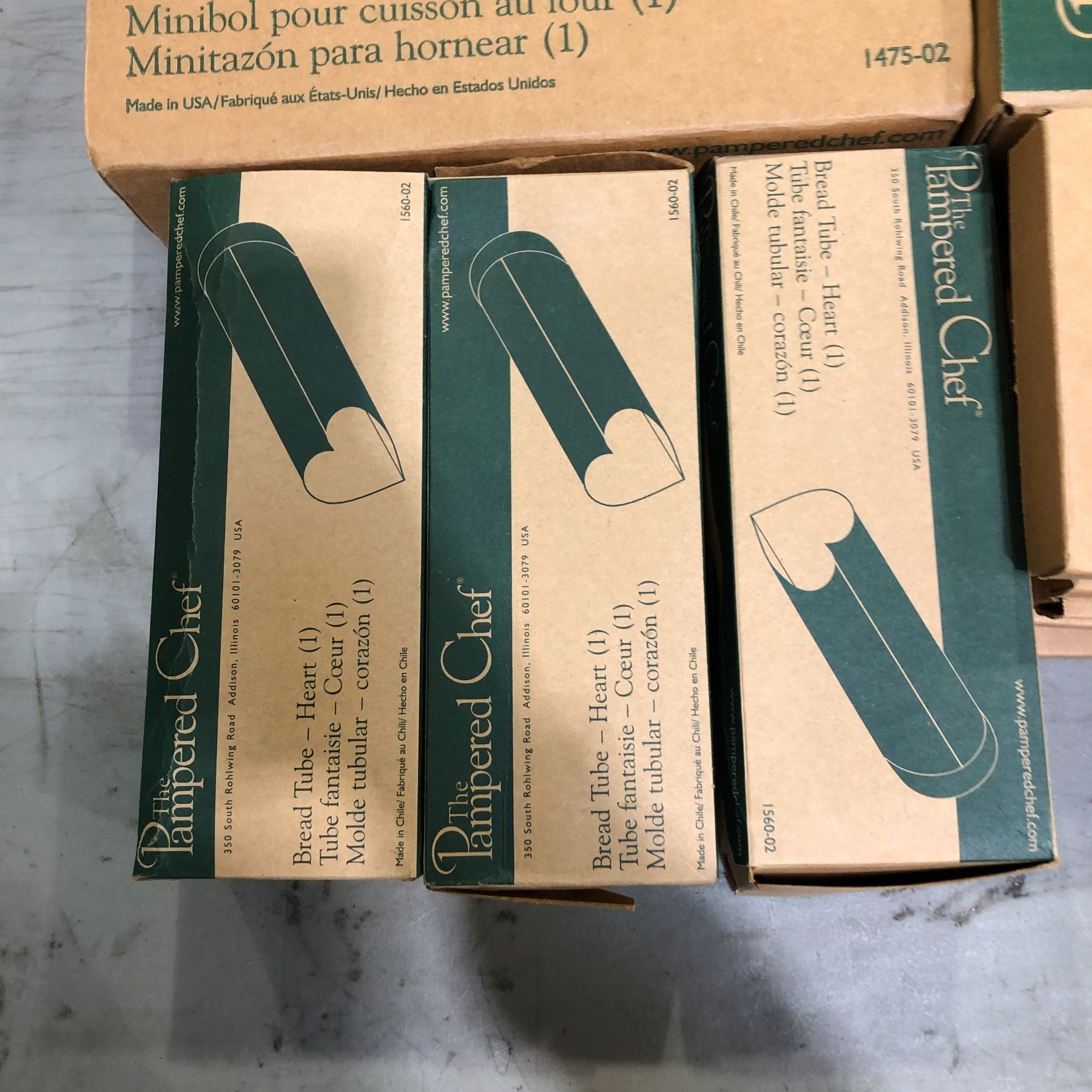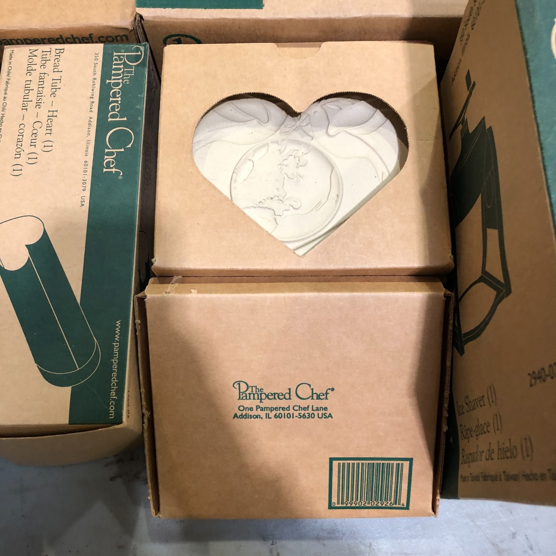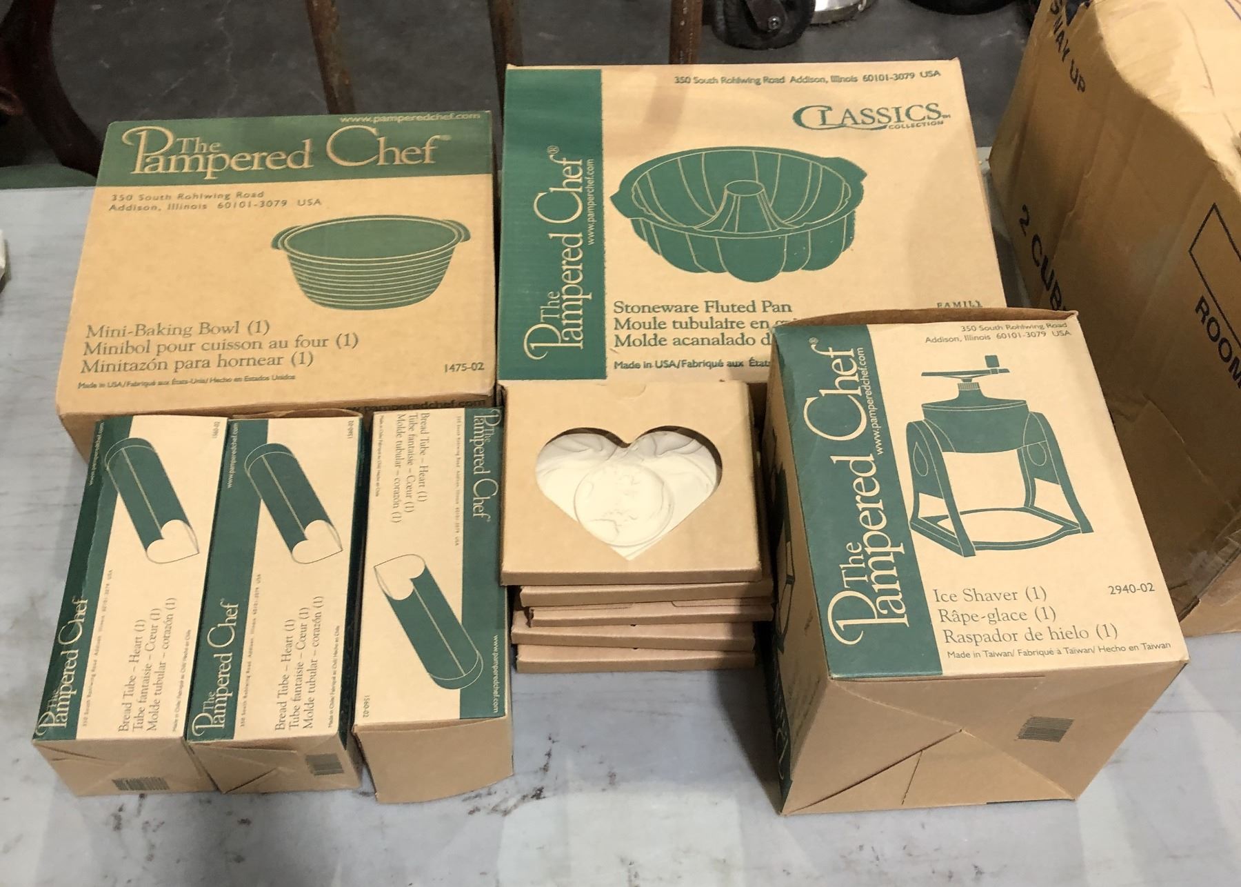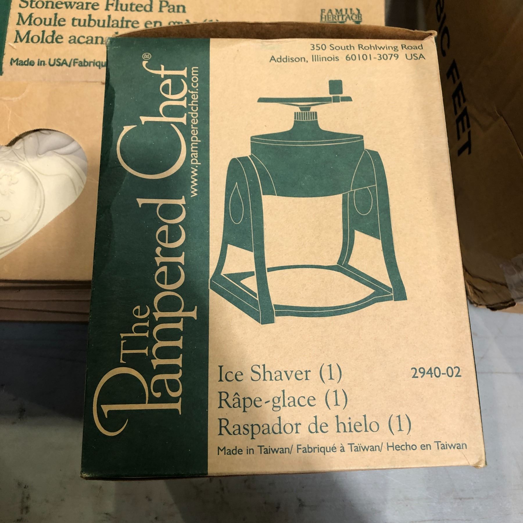 Group of assorted "The Pampered Chef items - includes ice shaver / mini baking bowls / fluted pan etc
