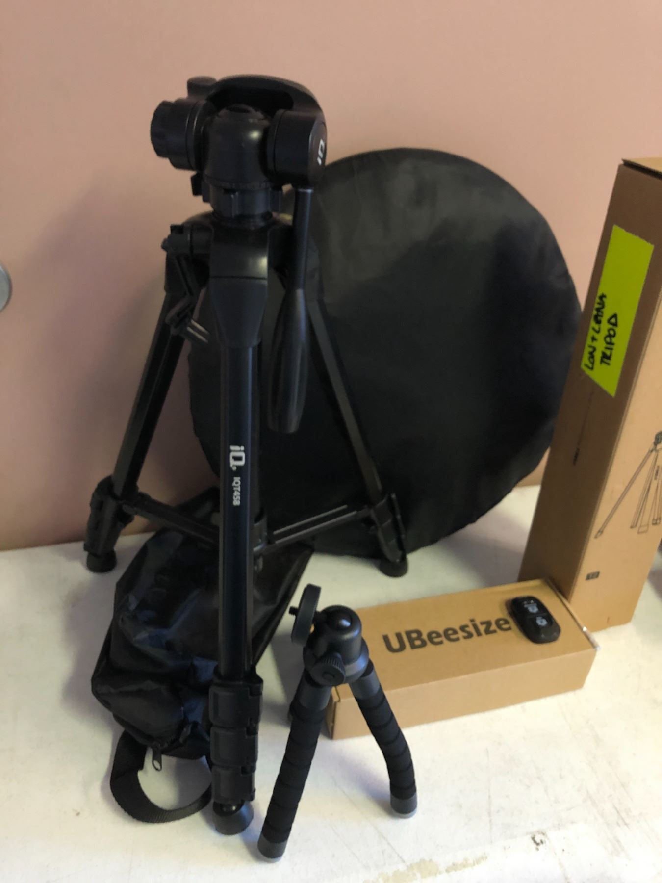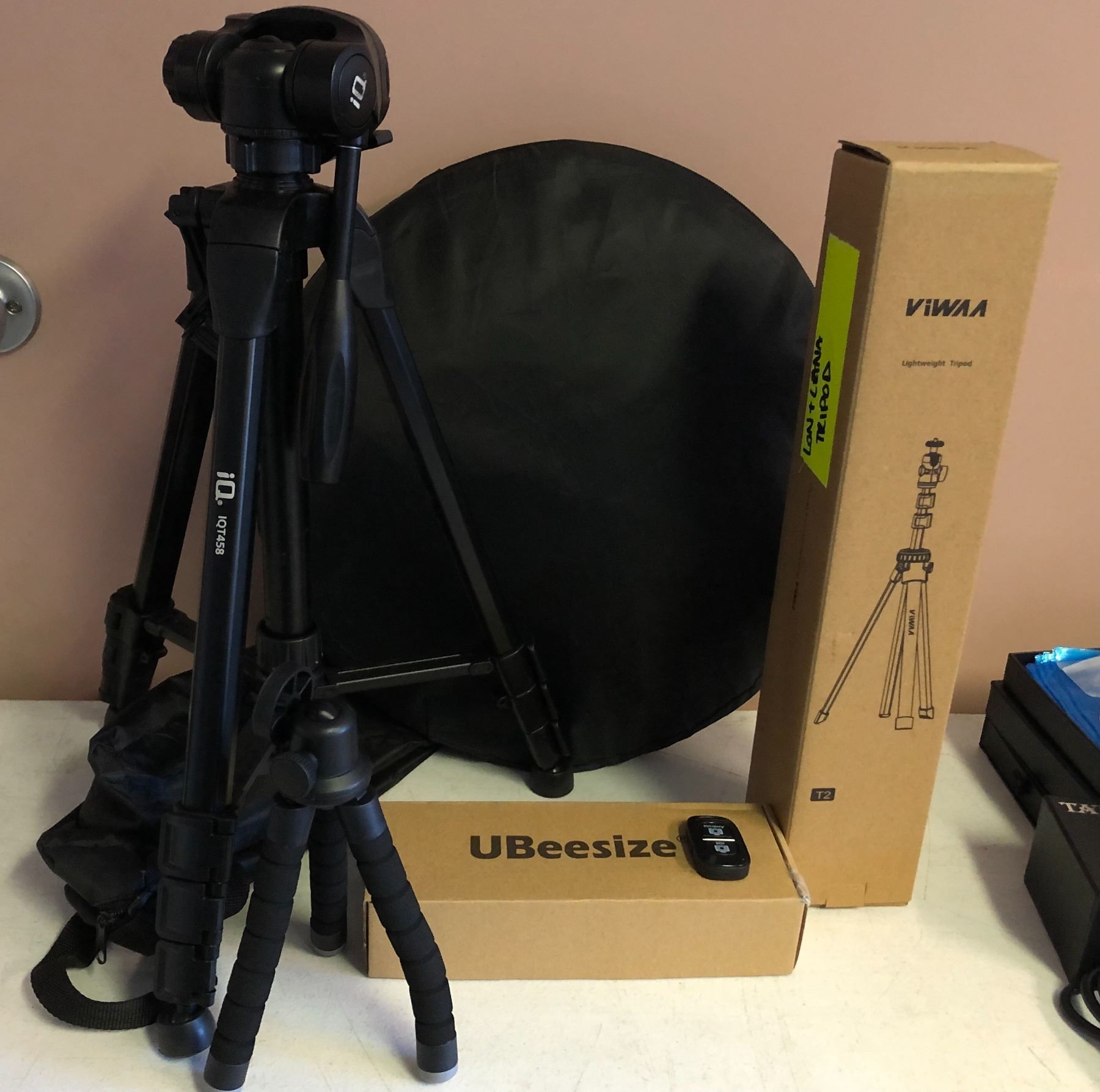 Group of assorted camera tri-pods
