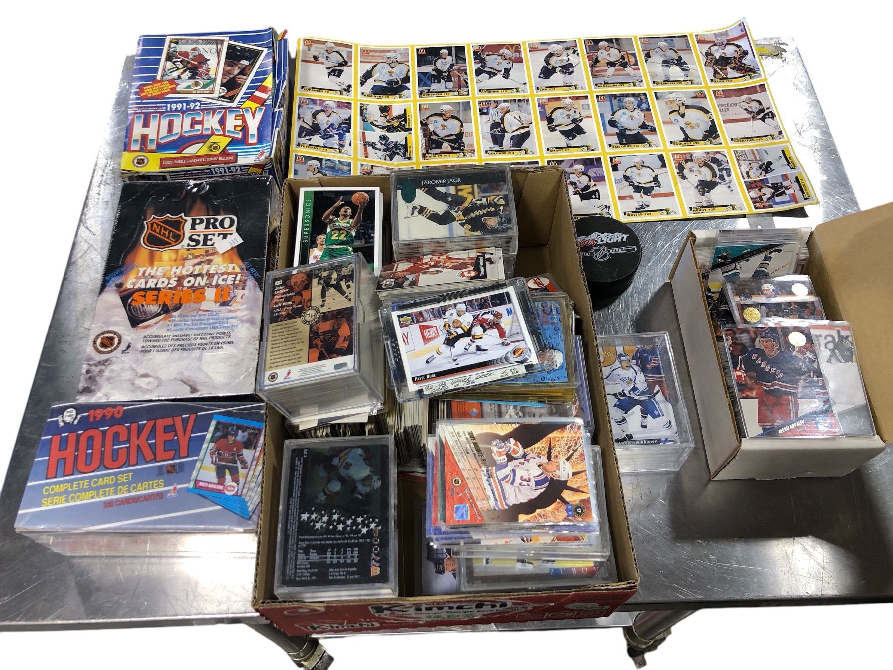 Group of assorted collectible hockey trading cards - O Pee Chee 1990/ NHL Pro Set The Hottest Cards On Ice (sealed)/ misc. cards