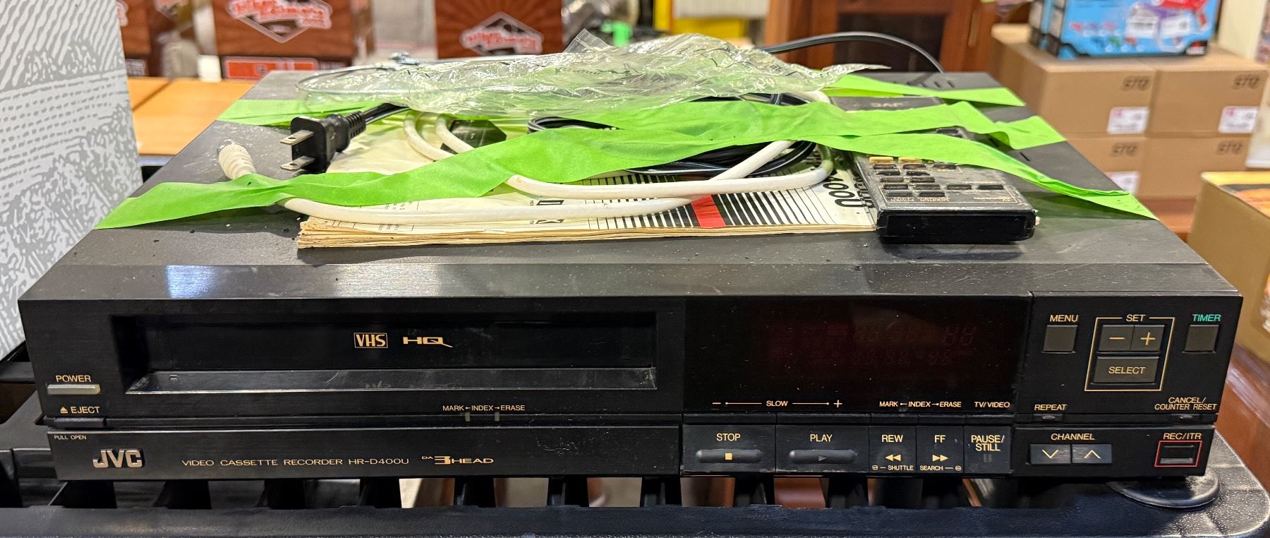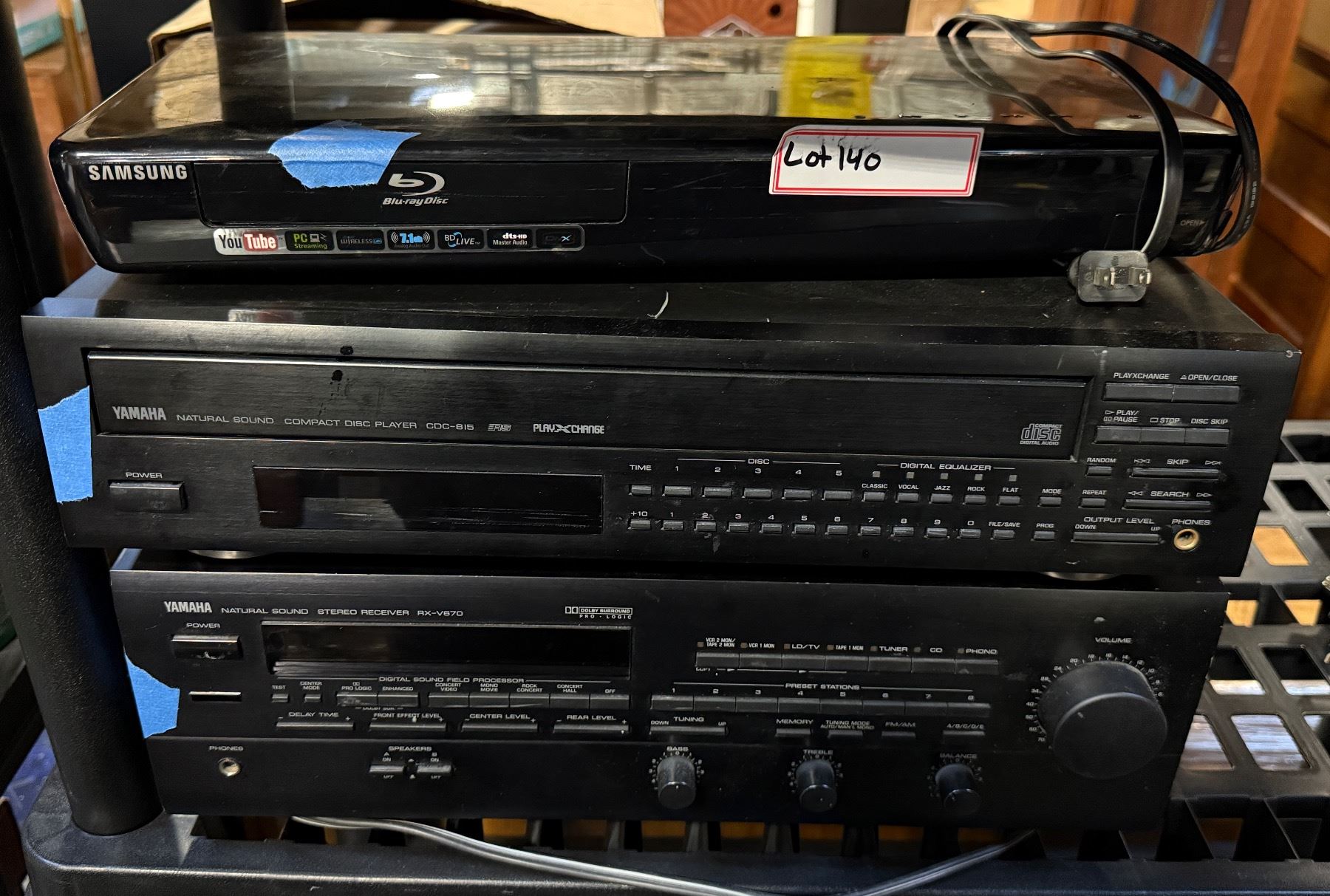 Group of assorted home audio systems - includes Samsung Blu-ray disc player (BD-P3600) / JVC video cassette recorder (HR-D400U) / Yamaha Natural Sound Compact Disc Player CDC-815