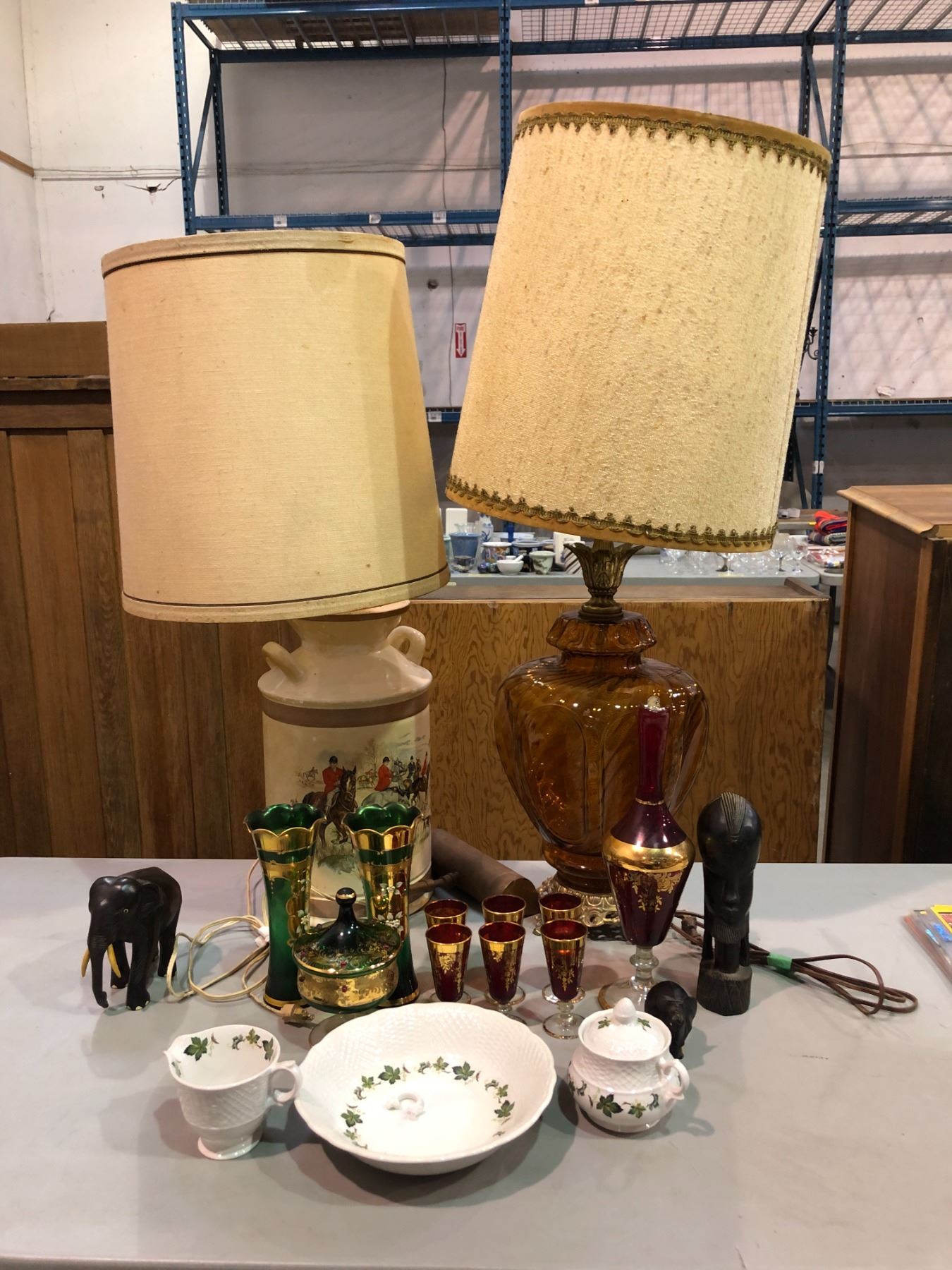 Group of assorted misc - includes decorative table lamps 35" height / assorted decor etc