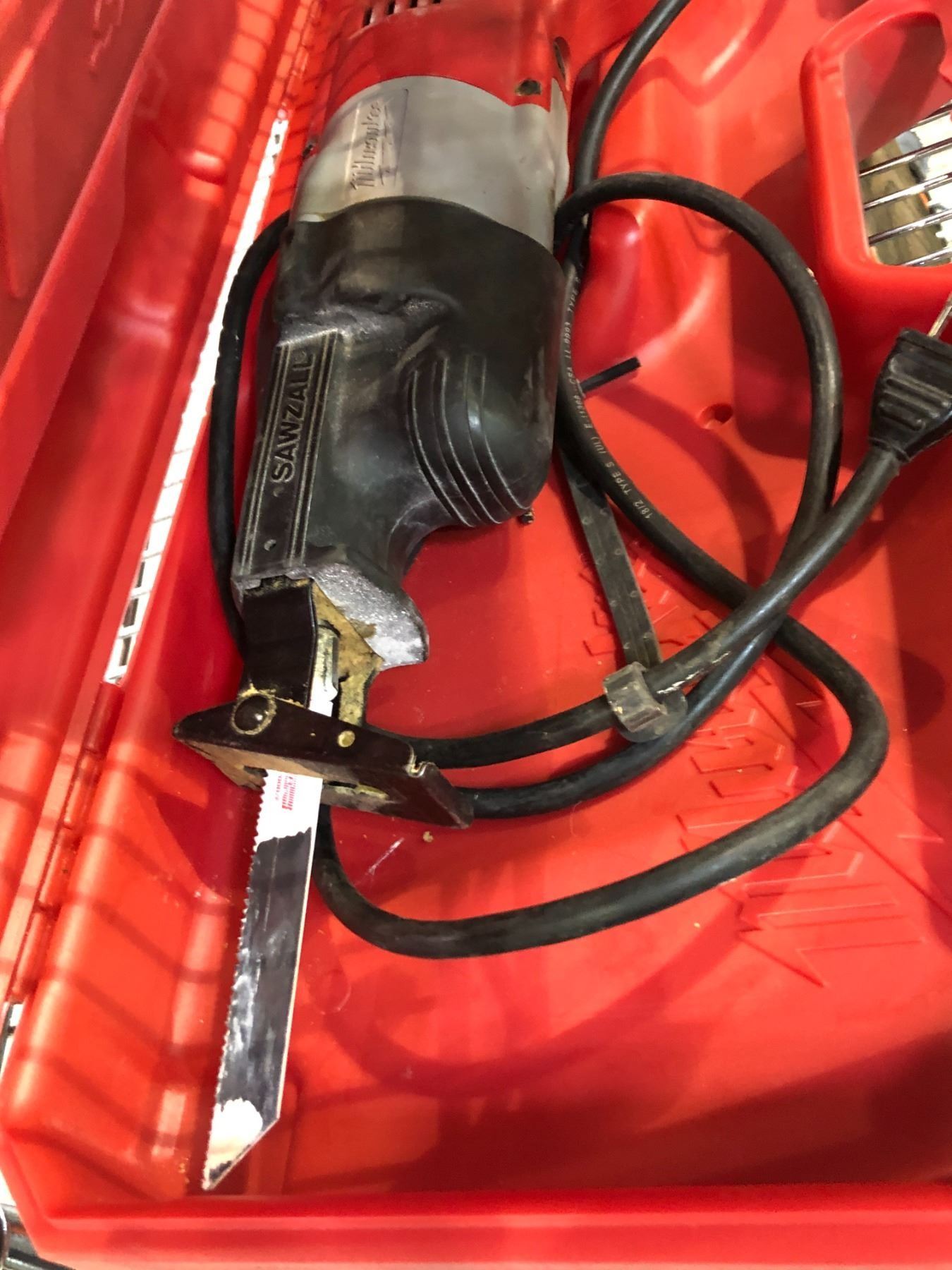Group of assorted tools - includes Mastercraft hammer drill & Milwaukee Sawzall (tested & working)