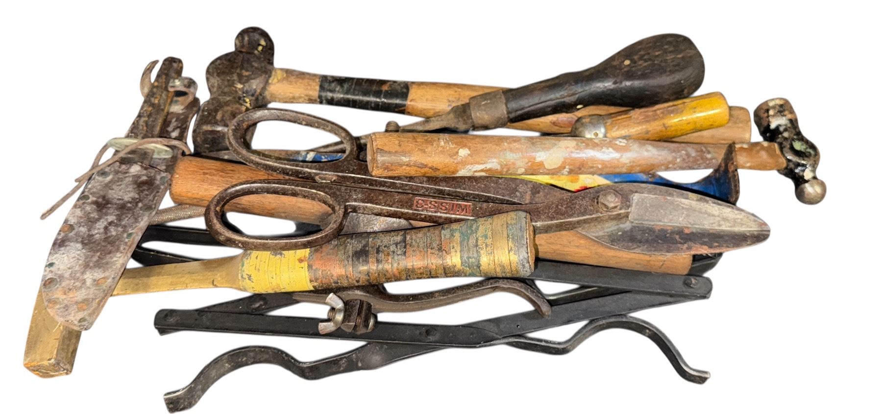 Group of assorted vintage hand tools - hammers / farriers / hand files / chisels etc