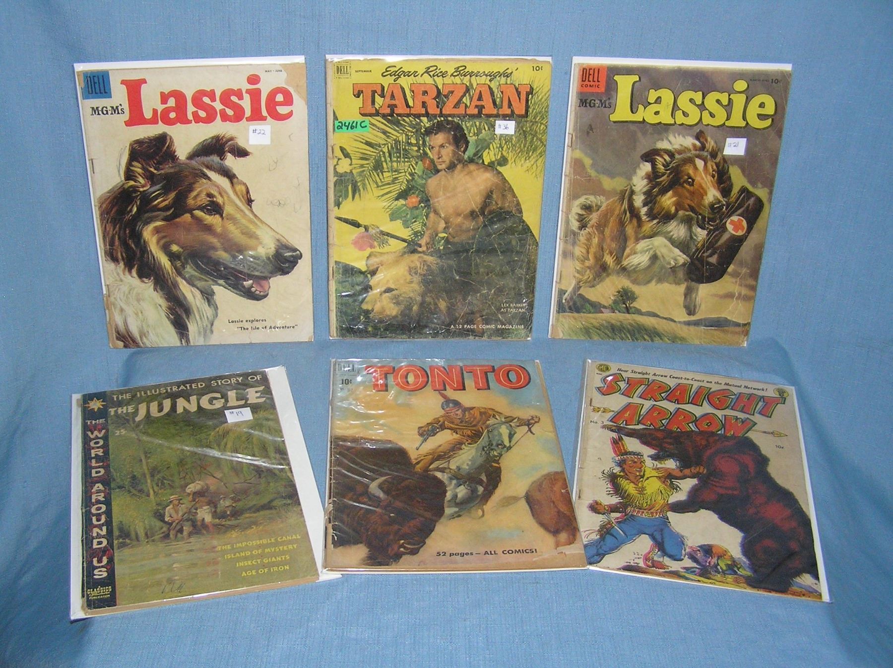 Group of early Dell and related comic books featuring Tarzan, The Jungle, Lassie, Tonto and Straight Arrow est. value $175.00-$200.00