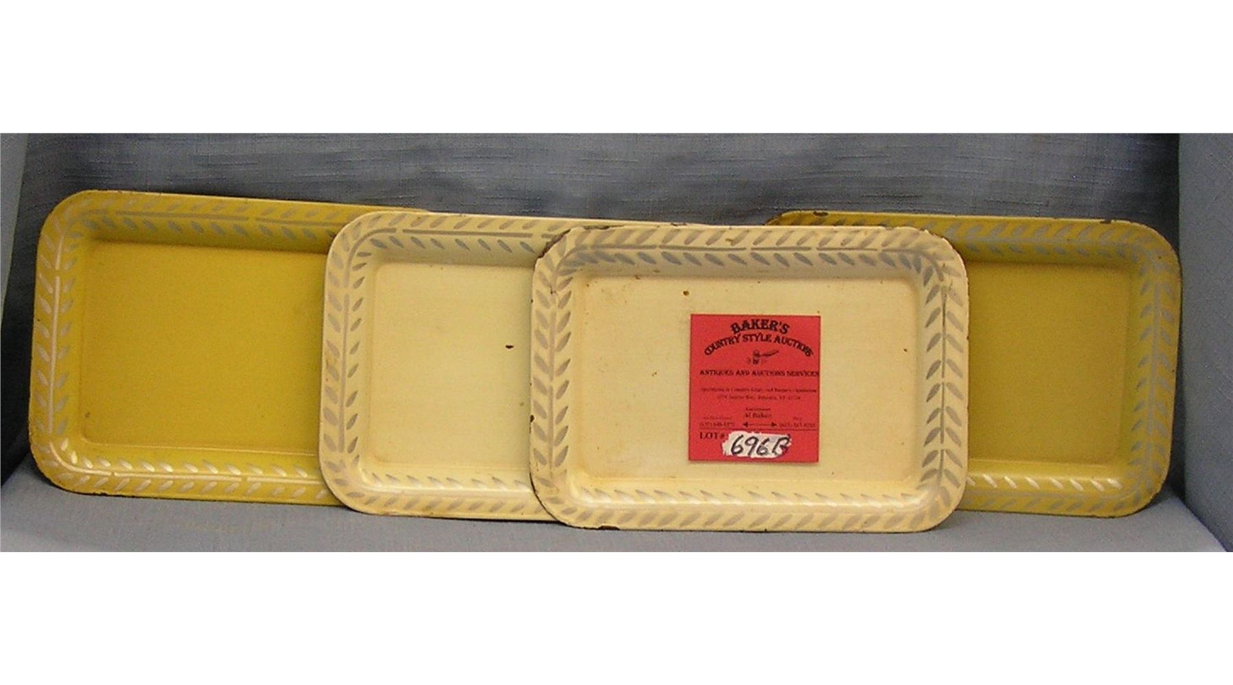 Group of four vintage cream colored serving trays est. value $30.00-$40.00