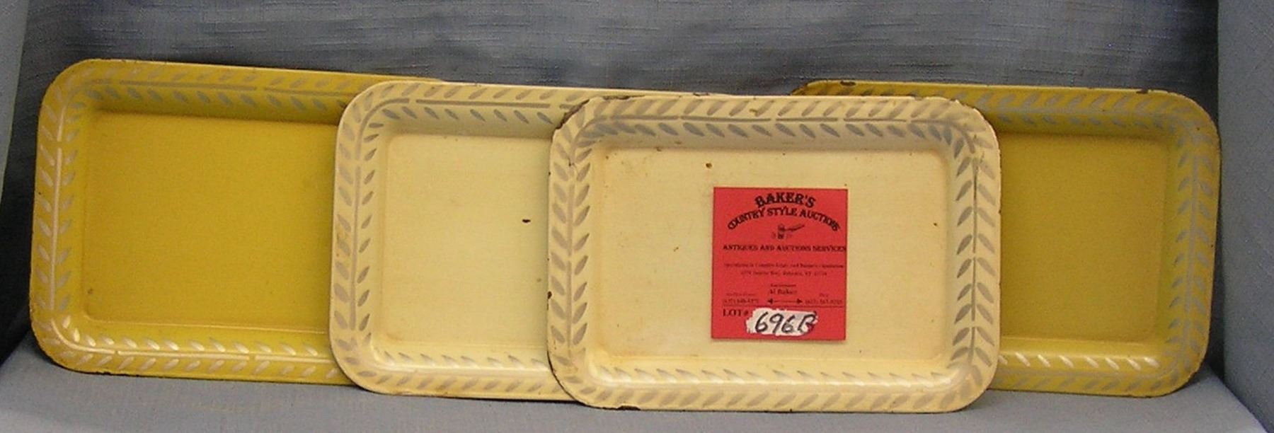 Group of four vintage cream colored serving trays est. value $30.00-$40.00