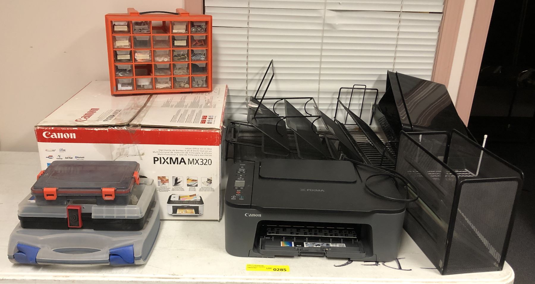 Group of misc. items - includes Canon Pixma printers/ office misc/ parts organizer etc.