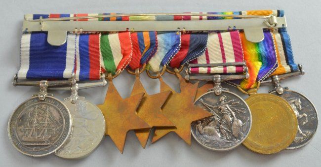 Group of nine Royal Navy First and Second World War medals J37876 W A Parker L TEL RN including George V Naval long service and good conduct medal