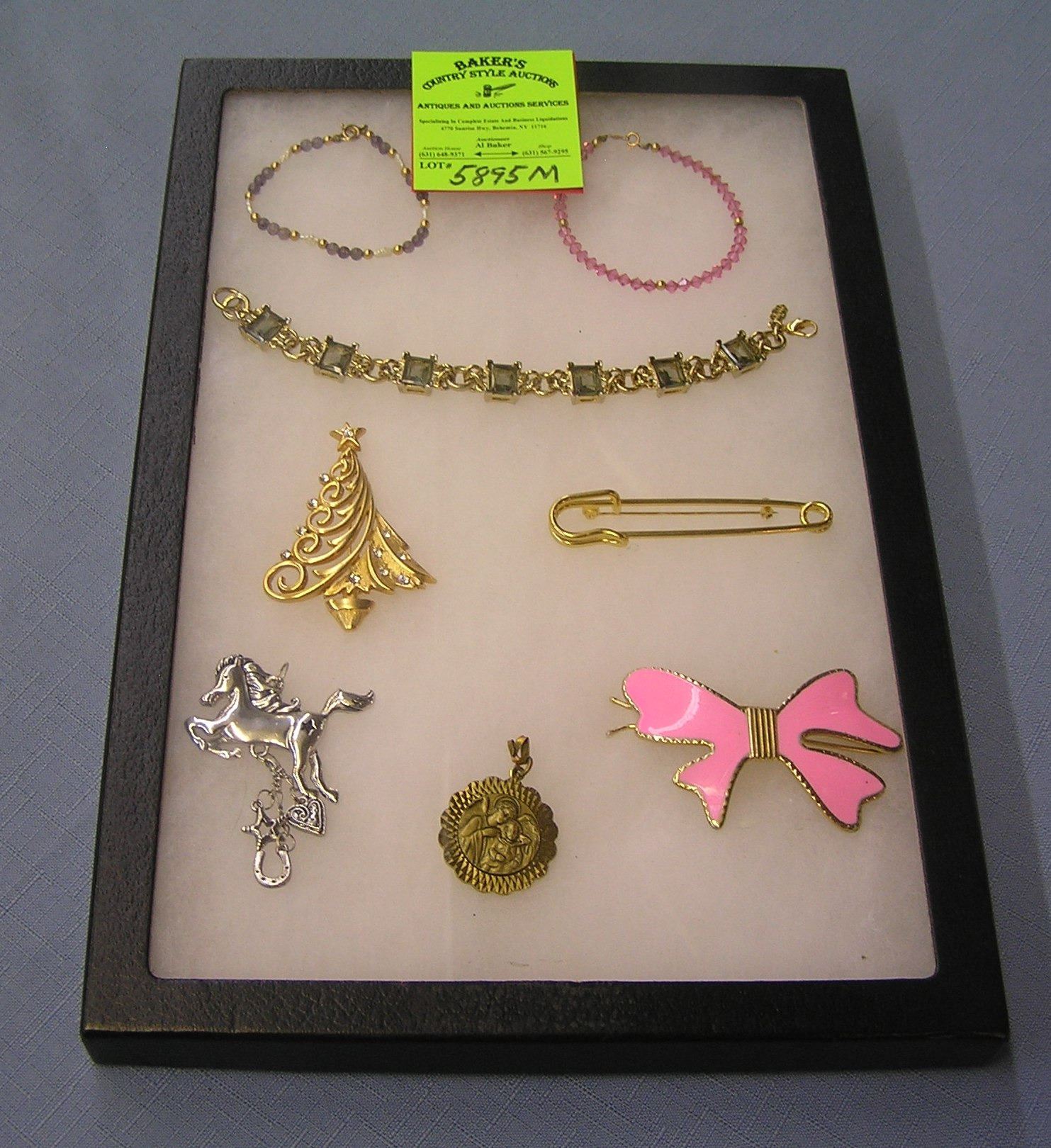 Group of quality pins and bracelets includes 14k and gold filled clasp, signed pieces by Stella, Dot, J and J and more est. value $40.00-$50.00