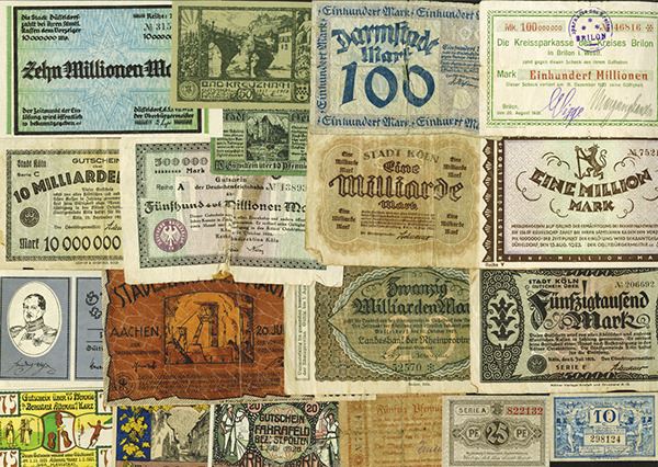 Germany, Notgeld. Many municipalities represented, many high values are well worn, the low values not so much. Includes a packet from Frankenhaussen. 23 pieces.