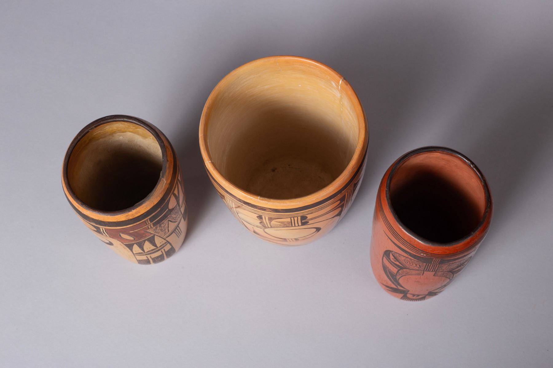 Group of three Hopi Pueblo Polychrome Historic Pottery Cylinders