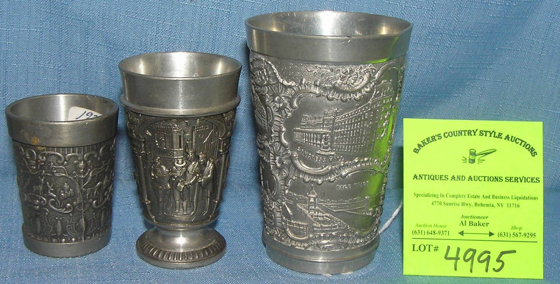 Group of three vintage souvenir pewter drink cups $125.00-$150.00