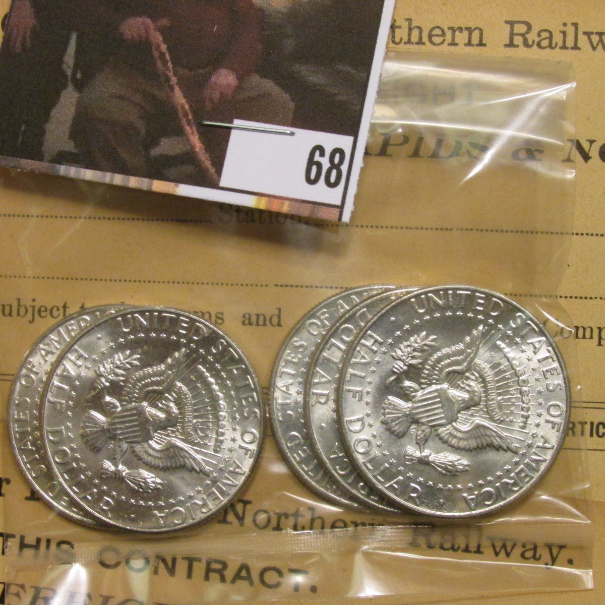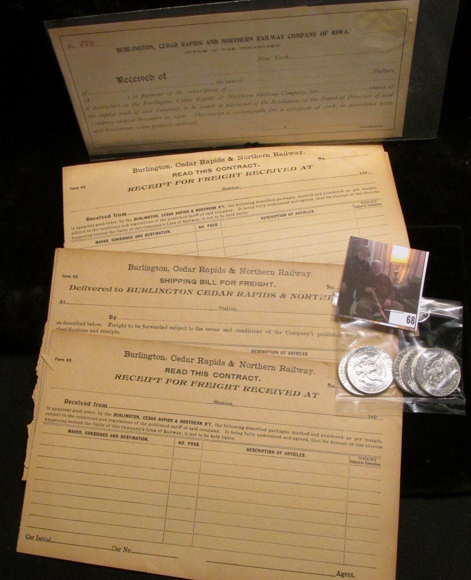 Group of various unissued Freight forms from "Burlington, Cedr Rapids & Northern Railway"; & (5) 1964 P Gem BU Silver Kennedy Half Dollars.
