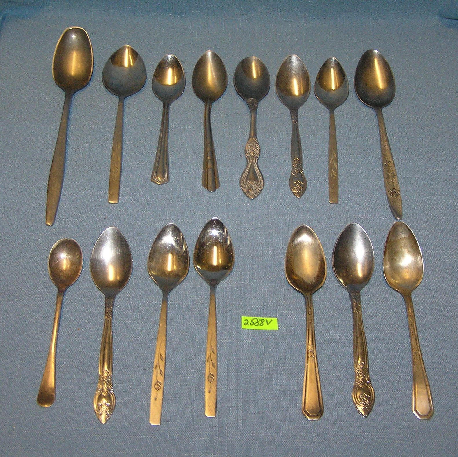 Group of vintage flatware spoons includes silver plate and stainless steel, great for jewelry making est. value $25.00-$35.00
