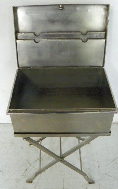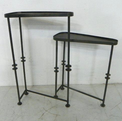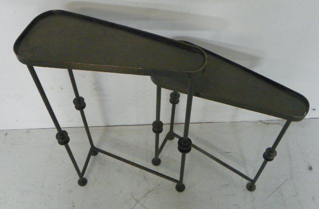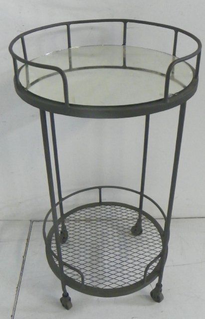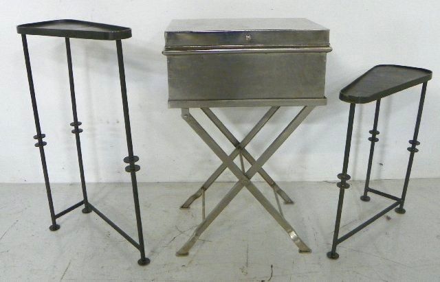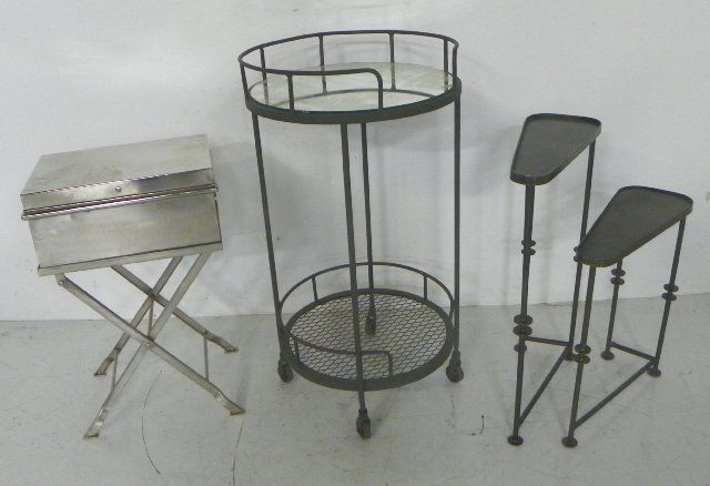 1- Round metal mirrored table, approx. 18" x 33". 1- Nest of 2 metal tables, approx. 26" x 15". 1- Metal box on stand, approx. 15.25" x 10.25" x 25". 4 pieces in total. Please read our terms of sale.