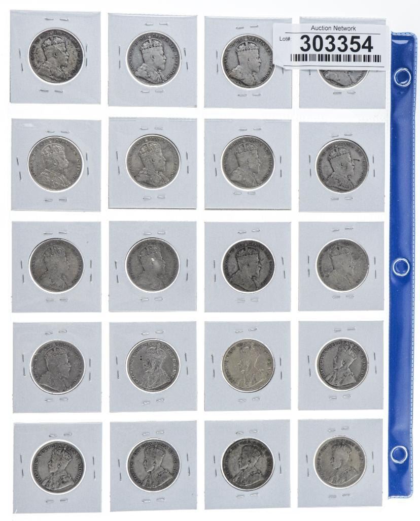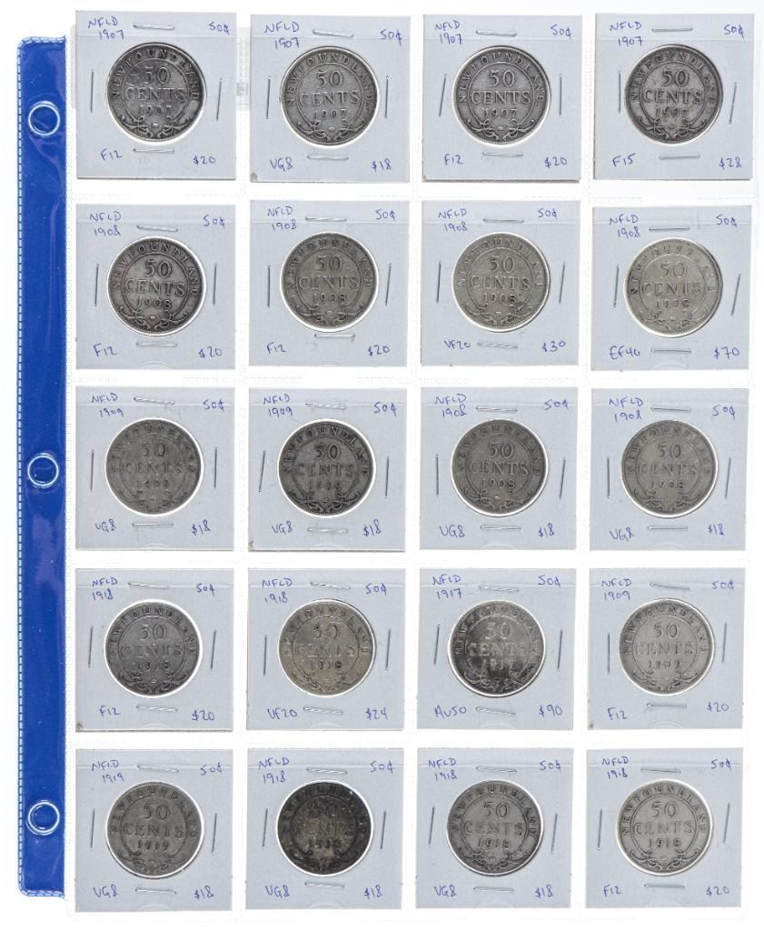 Grouping 20 NFLD. Silver Half Dollar Coins - Dating 1907 - 1918