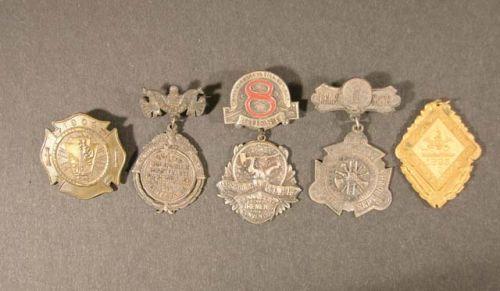 Grouping of 5 fire fighting medals. 1) PA. State fireman's convention 1909 2) Beacon Engine Co. Guest of Columbian Hose Co #1 Pigskill, NY Oct 5, 1892 3)Mt. Pleasant Fire Co #8, PA. State fireman convention. Harrisburg, PA. Oct 1914 4) NYFSA 14th annual convention, Atlantic City, NY. 5) Brooklyn Volunteer Fireman's Assoc. 1895.