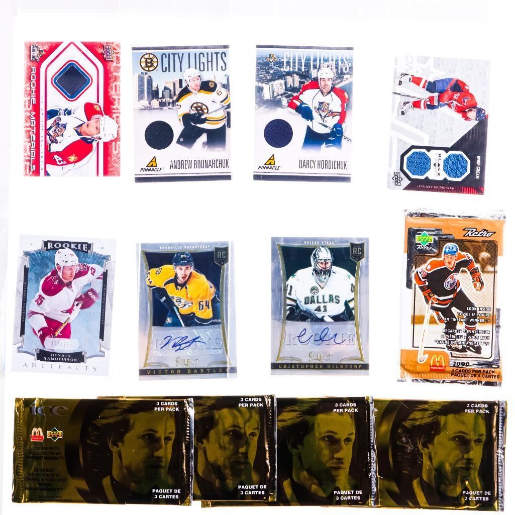 Grouping of 12 NHL Hockey Stars- Rookie Materials, Signed Cards, Special Issues & more.