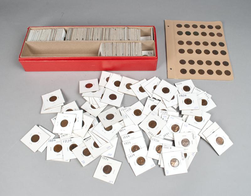 Indian Head Pennies, to include one-1880, one-1883, one-1890, one-1892, two-1893, one-1894, two-1897, five-1898, one-1899, three-1900, one-1901, five-1902, two-1903, one-1904, one-1905, three-1906, one-1907, two-1908, and one with date rubbed off. Mostly legible with some oxidization. Together with over 200 wheat pennies, various dates.