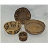 A grouping of 4 Native American baskets, including 2 attractive Papago baskets with nice patterns. Diameters include 3 1/2", 8", 9", and 10" with loose bottom.