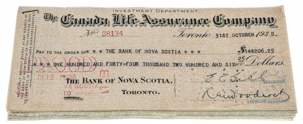 Grouping of Canada Life Assurance Banking Instruments - dated 1920's-40's With Excise Stamps
