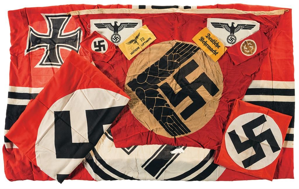 Grouping of Nazi Style Flags and Cloth Items