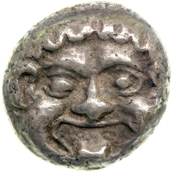 Grouping of Three Silver Coins, each displaying different styles of heads of gorgons. Two are from Parion in Mysia (drachm and hemidrachm) and one is from Neapolis in Macedon (trihemiobol). Condition averages nice VF. Lot of 3 coins.
