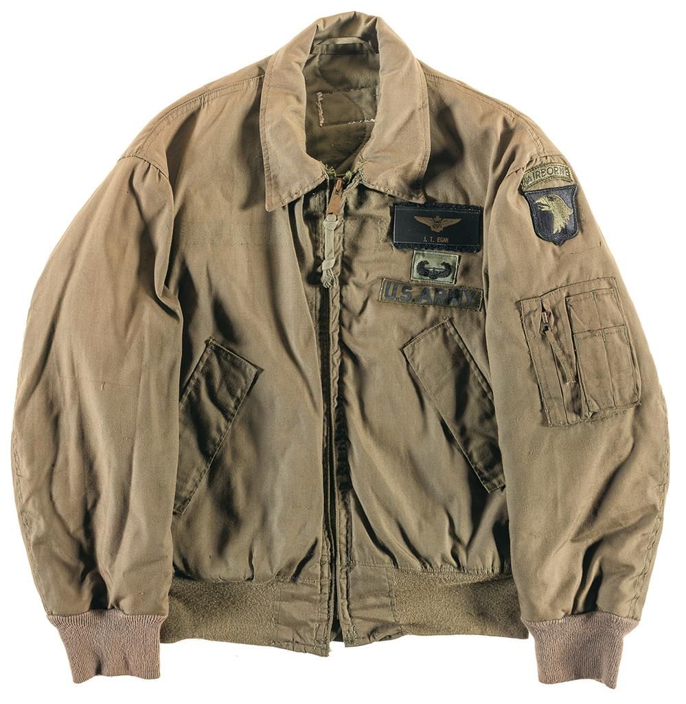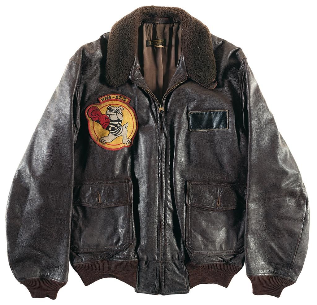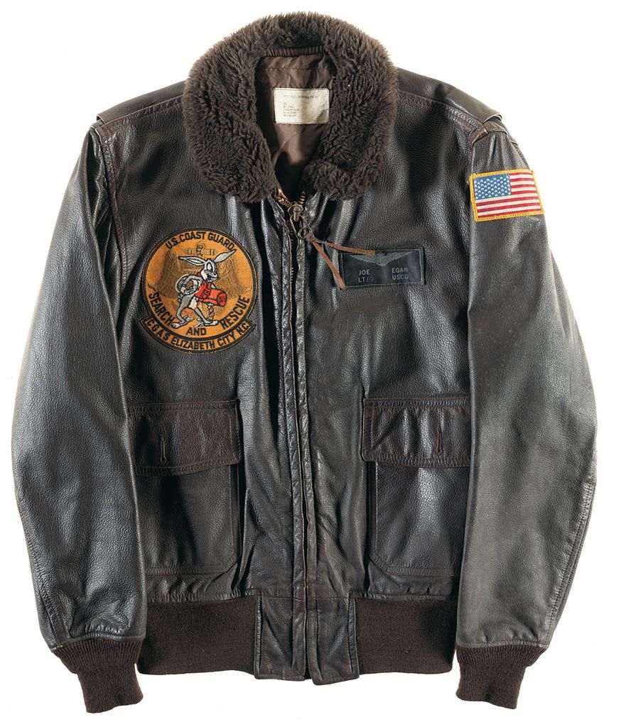USNR G-1 leather flight jacket (Pritzker & Sons) with Iron Men squadron patch and name tag. USMC G-1 leather flight jacket (Star Sportswear) with name tag and VMA-223 squadron patch. USCG G-1 leather flight jacket with CGAS Elizabeth City, NC patch and name tag. Army jacket with Navy name tag, 101st Airborne patch and cloth helicopter wing. Overall very good