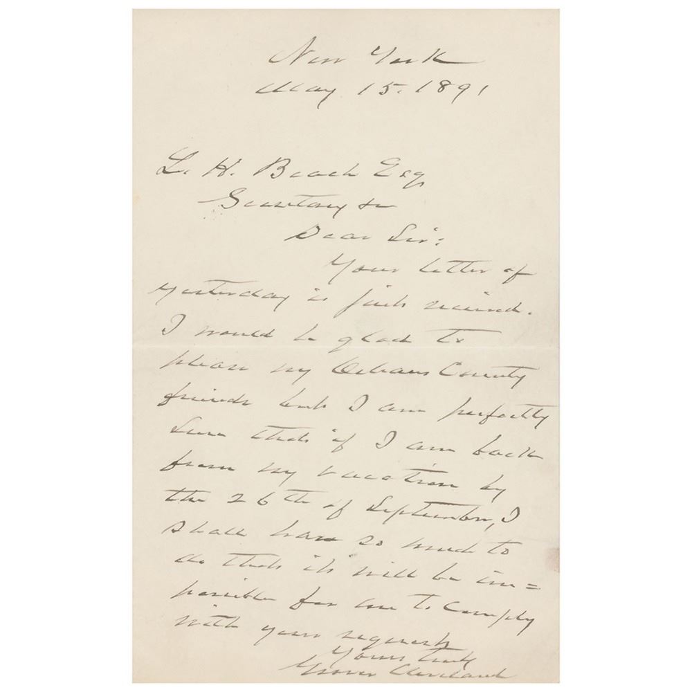 ALS, one page, 4.25 x 7, May 15, 1891. Letter to L. H. Beach, declining an invitation. In part: "I would be glad to please my Orleans County friends but I am perfectly sure that if I am back from my vacation by the 26th of September, I shall have so much to do that it will be impossible for me to comply with your request." In fine condition.