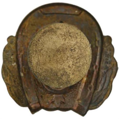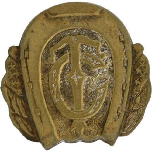<B>Grover Cleveland "CT" Campaign Stud.</B></I> Issued for Grover Cleveland's 1888 campaign with running mate Thurman this pin depicts the letters C and T for Cleveland and Thurman inside a horseshoe surrounded by draped flags. It is in good condition with nice patina and color. Measures 18mm by 20mm. Cleveland was the only president elected to two non-consecutive terms. <BR><BR><b>Shipping:</b> Miscellaneous Collectibles, Smal (<a target="_blank" href="http://www.heritageauctions.com/common/shipping.php">view shipping information</a>)
